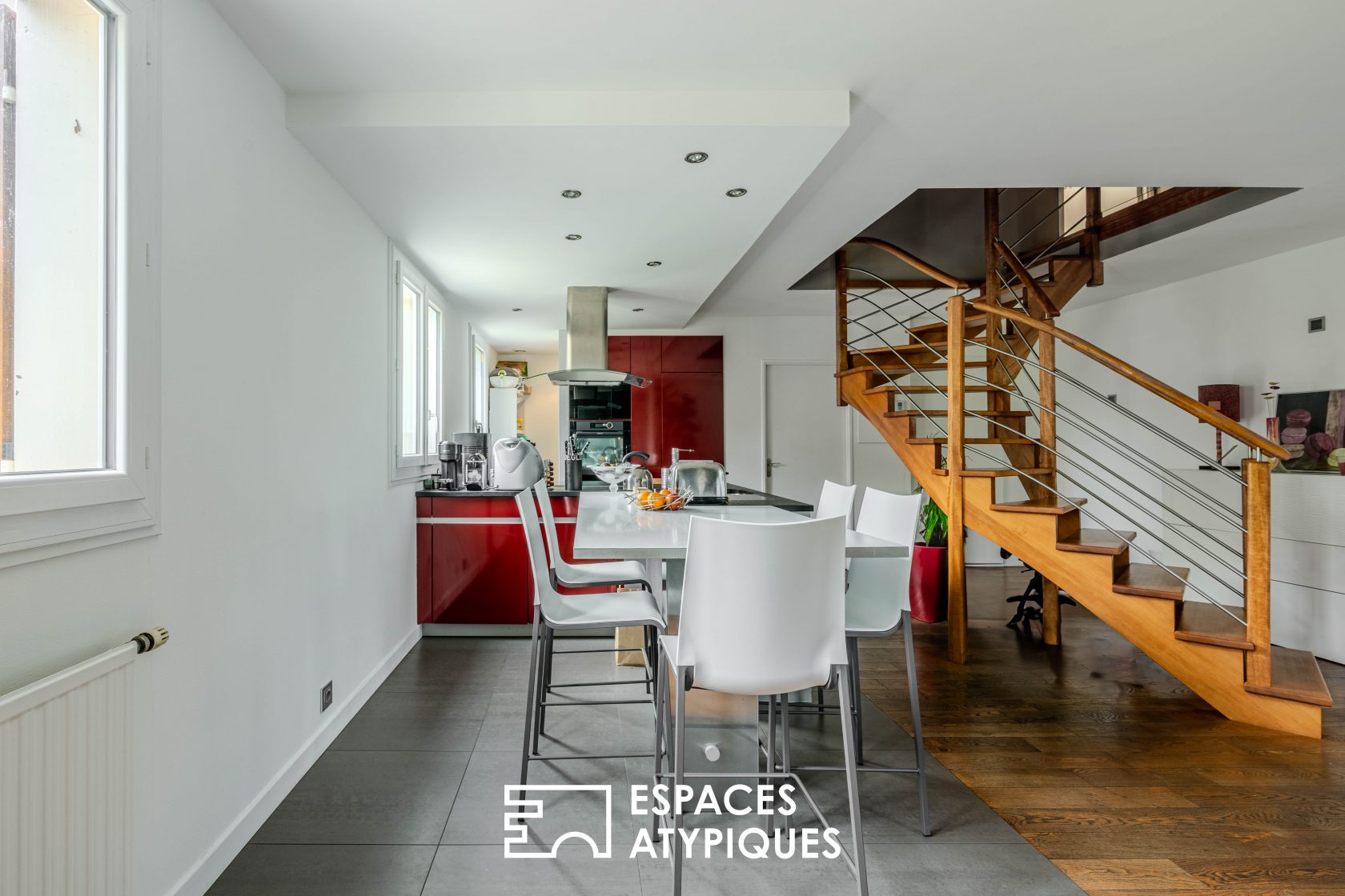 Nichée dans le quartier prisé de l’Eraudière, à deux pas des rives verdoyantes de l’Erdre, cette adresse confidentielle abrite un élégant duplex de 130 m² entièrement repensé, conjuguant l’esprit d’une maison et le confort d’un appartement contemporain.