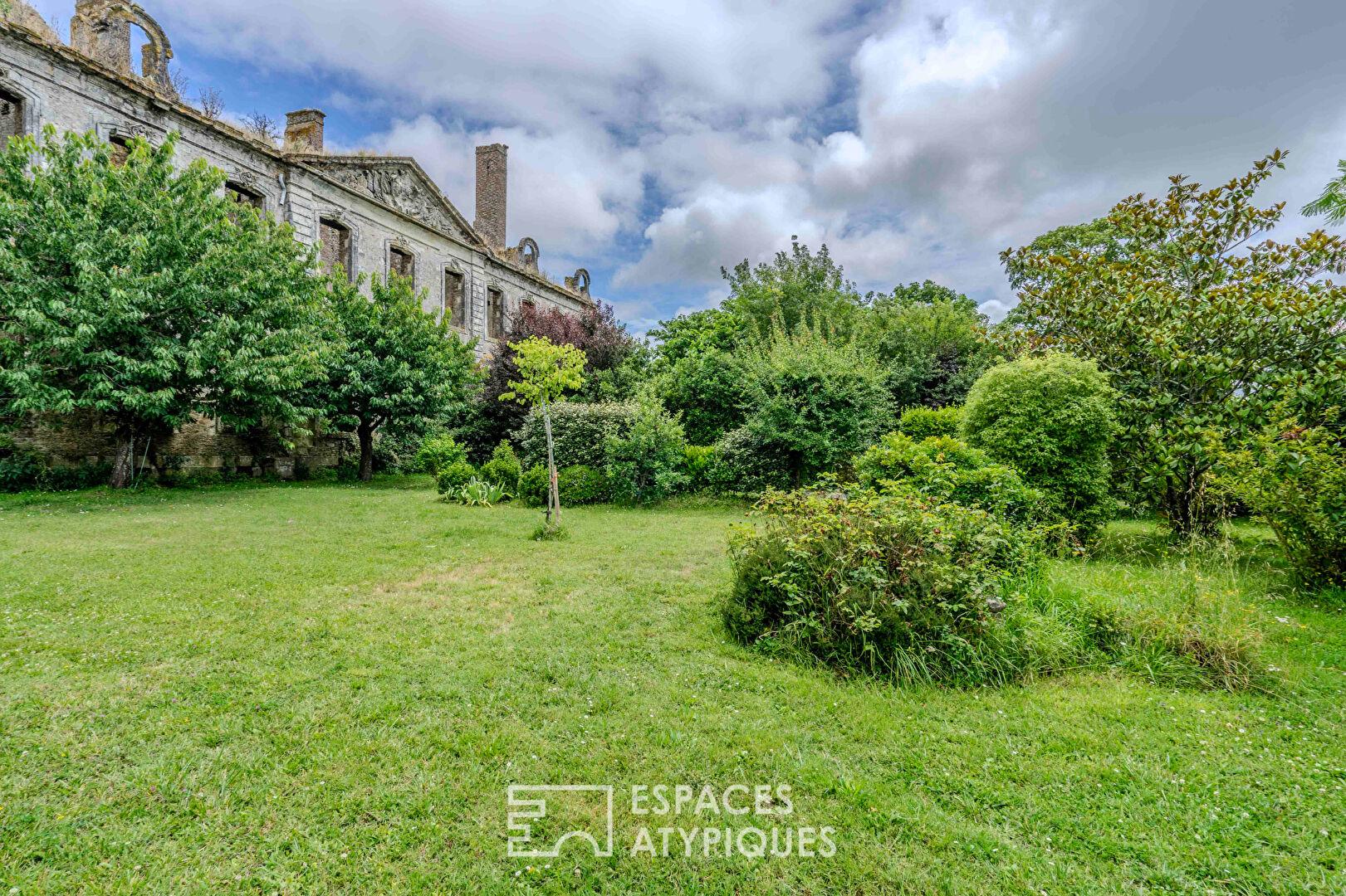 À l’extérieur, la propriété se distingue par la richesse de ses aménagements paysagers. Trois jardins aux ambiances singulières structurent le lieu. Le premier s’organise autour du charme historique d’un vestige de château qui domine élégamment le jardin et confère à l’ensemble une dimension patrimoniale unique. Le second, d’inspiration anglaise, déploie une atmosphère bucolique propice à la détente et aux promenades. Enfin, les perspectives s’ouvrent largement sur le paysage et l’estuaire, offrant une vue majestueuse qui évolue au fil des saisons et de la lumière.
