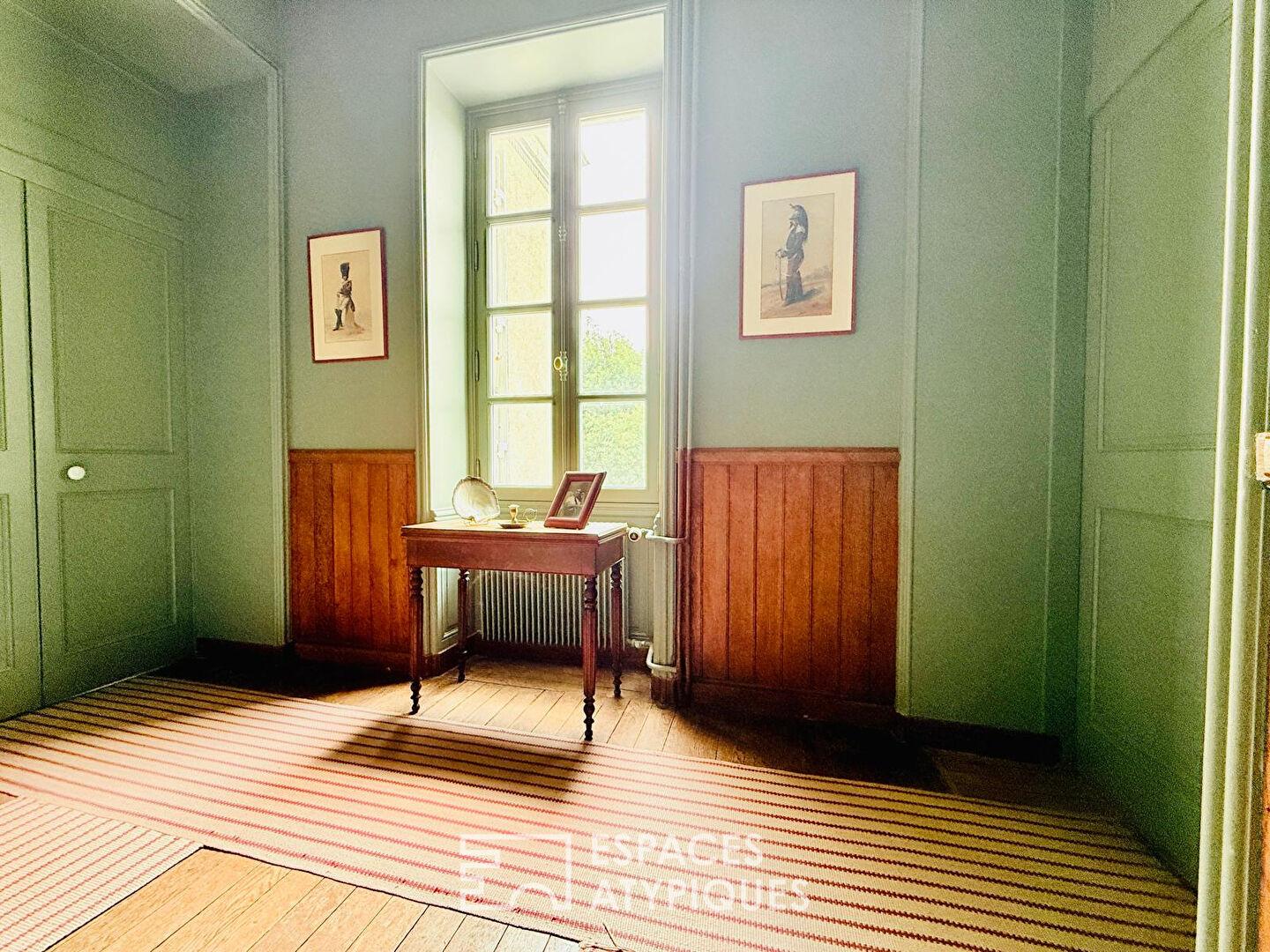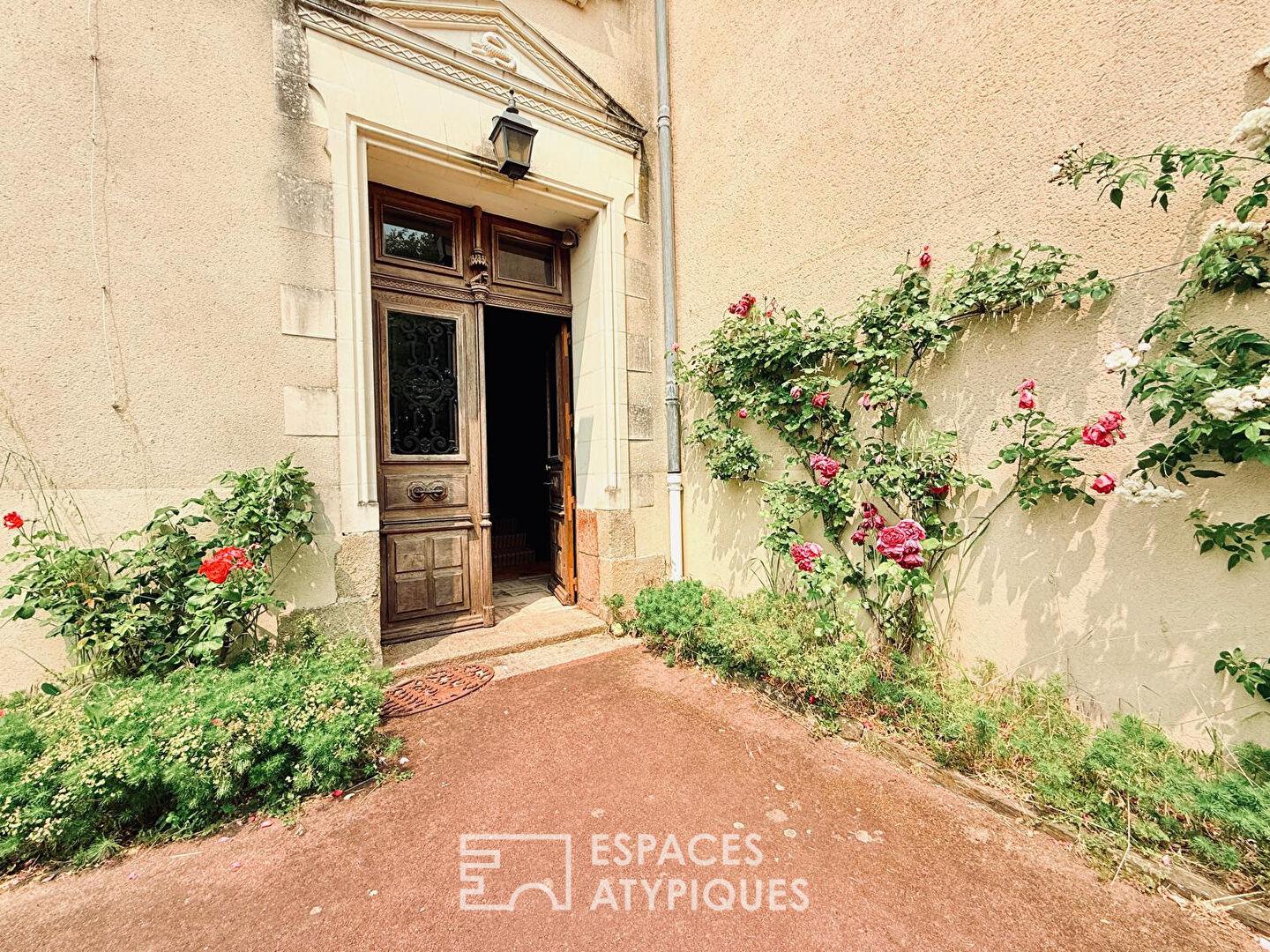 Au cœur du vignoble, dans un écrin de verdure préservé à quelques minutes de Vallet, 15 minutes de Nantes, cette élégante maison de maître déploie toute la noblesse de son histoire. Une silhouette intemporelle, entre bourgeoise de charme et demeure gentilhommière, qui semble avoir traversé les siècles sans rien perdre de son âme.