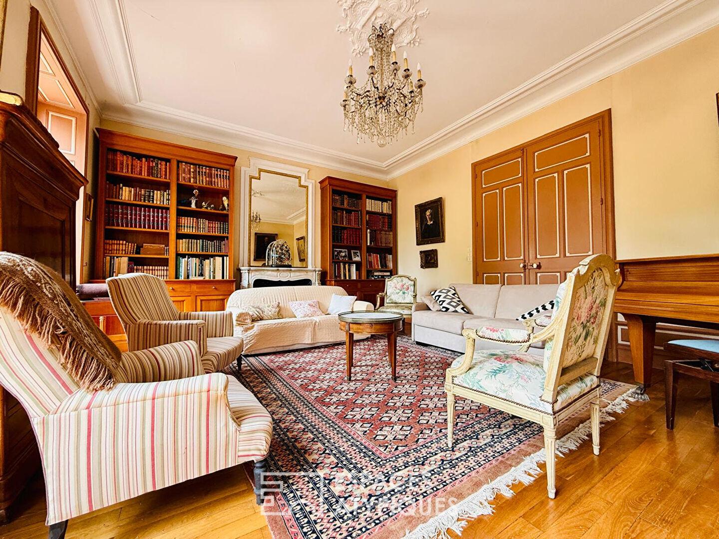 À l’extérieur, le spectacle est tout simplement saisissant. Plus de deux hectares de terrain dessinent un parc arboré rare, ponctué d’essences majestueuses. Ici, le temps ralentit. Une piscine chauffée s’intègre harmonieusement dans cet environnement bucolique, promesse de journées d’été interminables.