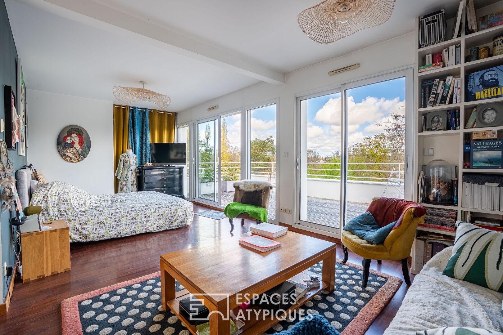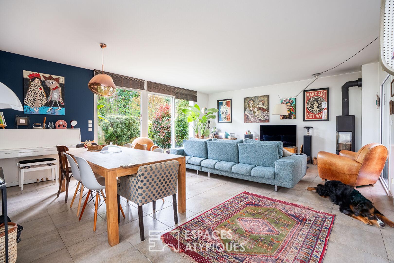 Au coeur d’un environnement luxuriant et calme, en bord de Sèvre à Rezé, à proximité des commodités, cette maison – triplex vous offre un lieu de vie unique entre nature, design et espace, avec une vue apaisante sur la rivière et son jardin.