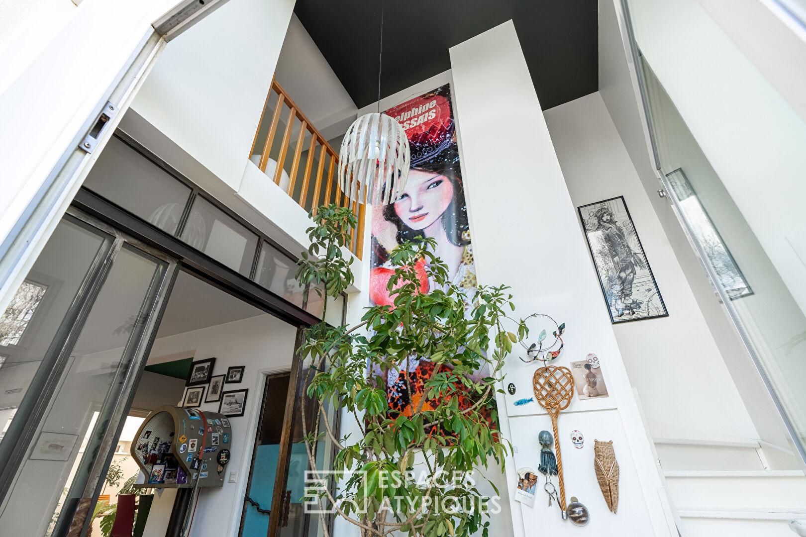 Dans une résidence bien entretenue, garage, cave et stationnements couverts sécurisés complètent ce bien singulier, pensé pour les amateurs de lieux singuliers.