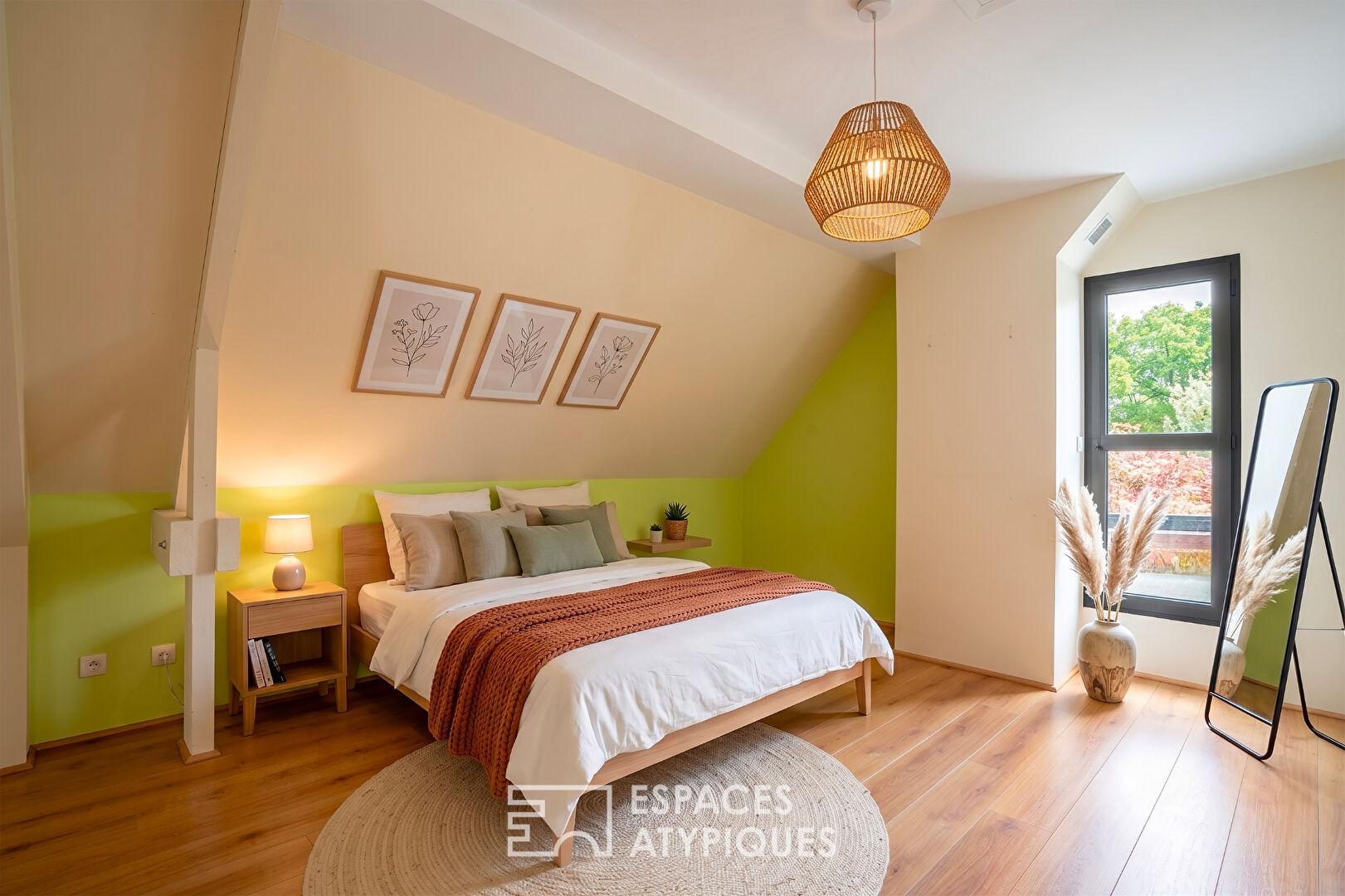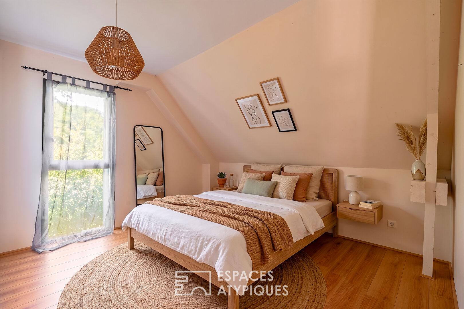 Côté nuit, la suite parentale en rez-de-chaussée séduit offre un dressing et une salle d’eau privative.