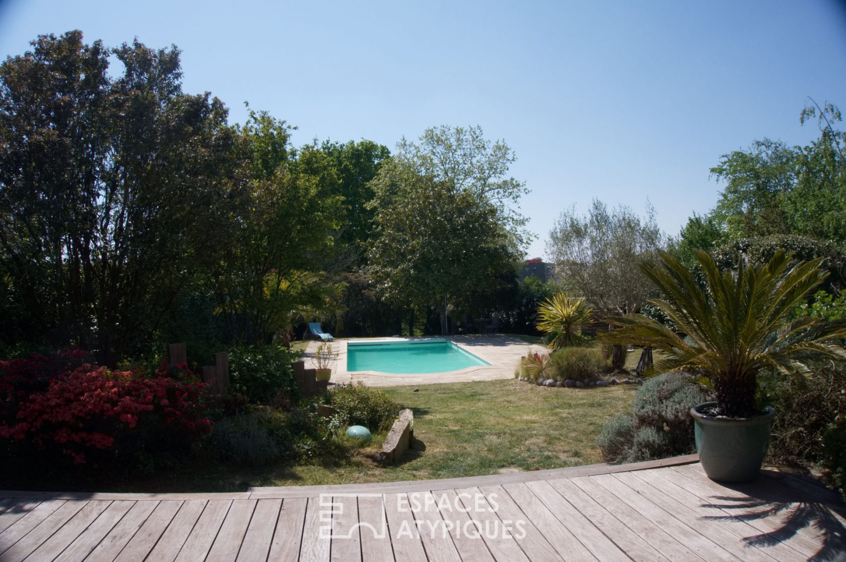 Réalisée à la fin des années 1970, cette superbe maison de 215 m² conçue par un architecte est une oeuvre unique, nichée au calme de son quartier résidentiel proche du centre-ville de Thouaré.
