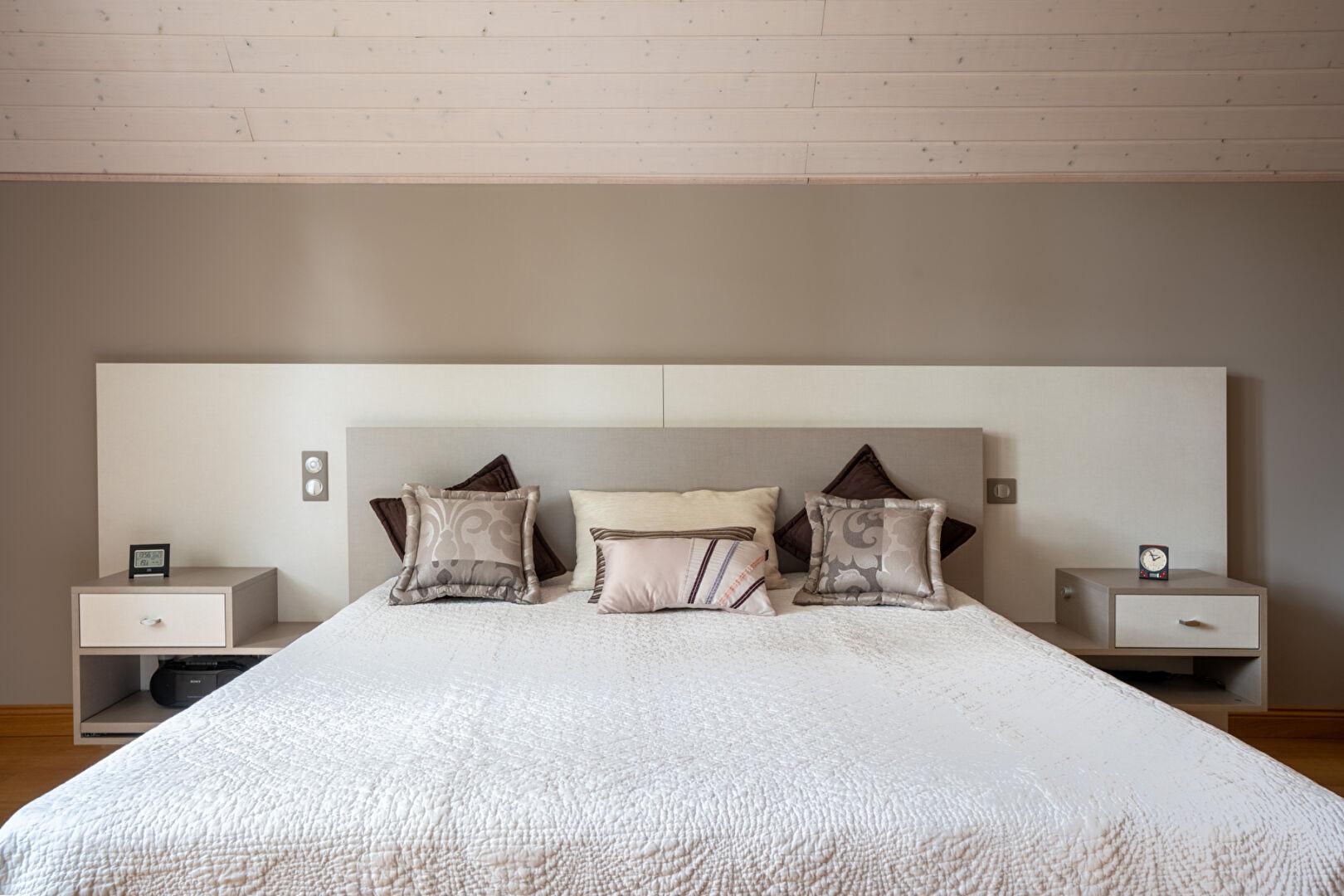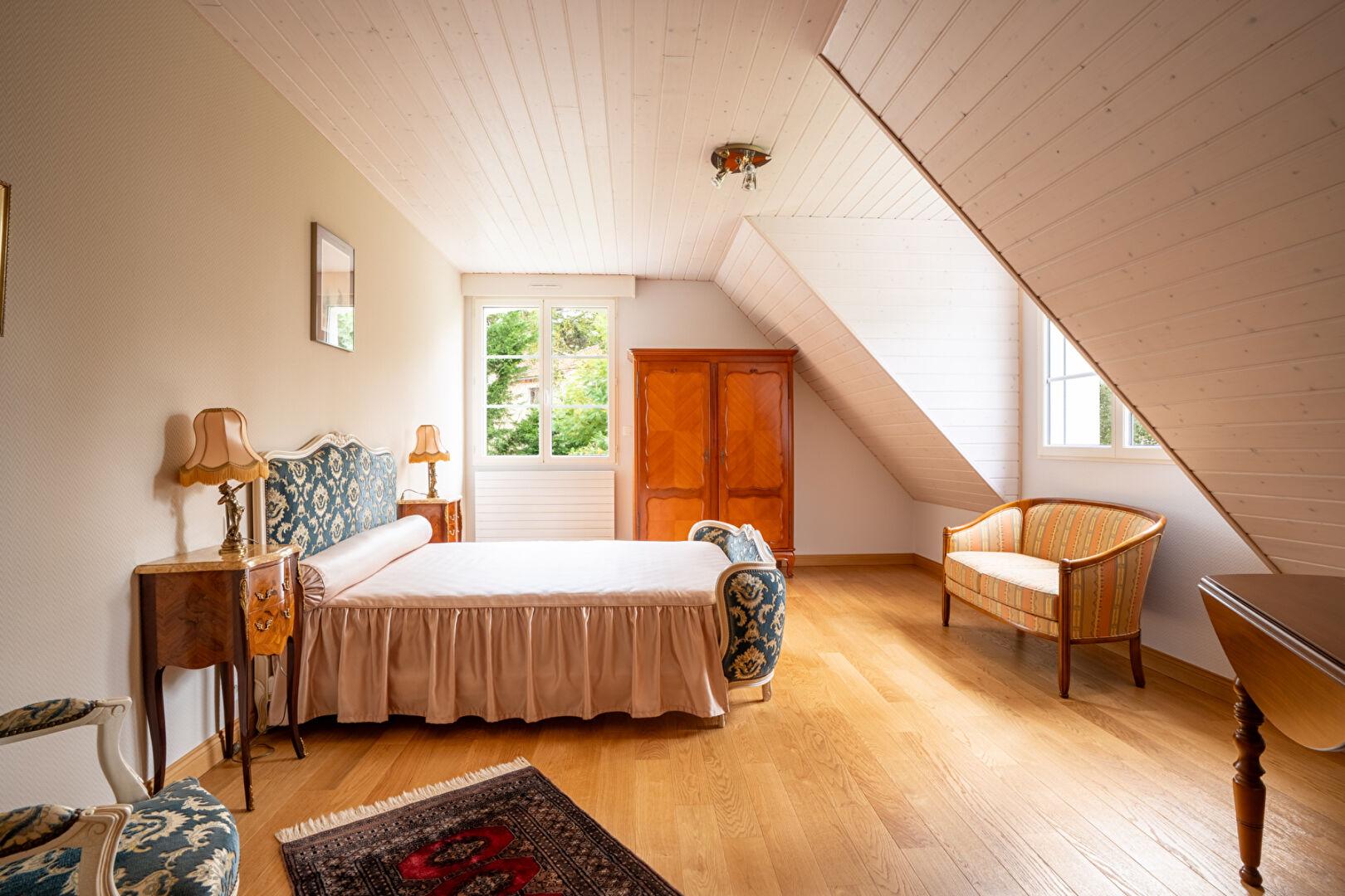 La vie de plain-pied est ici une évidence : une superbe suite avec dressing et chauffage au sol vous promet un confort absolu, été comme hiver. À l’étage, l’escalier dévoile un espace dédié à la famille et aux invités : cinq chambres aux volumes généreux, dont une seconde suite parentale, véritable refuge de sérénité.