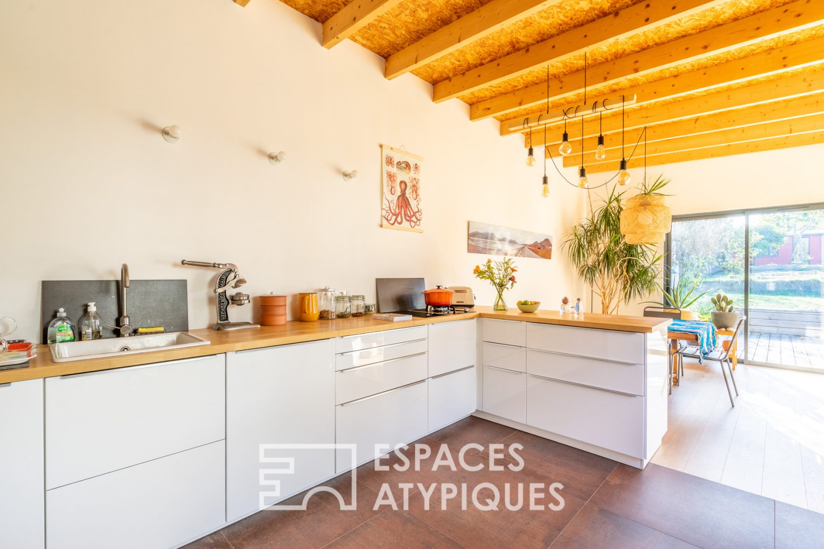 Cette propriété aux belles prestations, se compose d’une maison principale de 97 m² habitables entièrement de plain-pied, d’un studio indépendant de 14 m² ainsi que d’un atelier. Un charmant patio nous invite à découvrir une agréable pièce à vivre caractérisée par ses volumes et ses perspectives. Son exposition Sud lui apporte une luminosité exceptionnelle tout au long de la journée grâce à ses nombreuses ouvertures. Une cheminée suspendue « Focus » habille parfaitement cette pièce à vivre, de par son design contemporain, sa prestance, mais également son efficacité. Une buanderie ainsi qu’une cuisine, entièrement aménagée et équipée, prolongent cette pièce de vie.