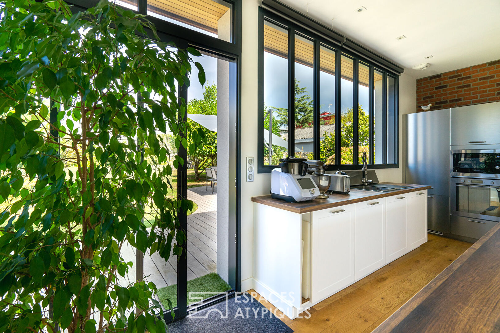 La luminosité, les volumes, et les ouvertures sur l’extérieur verdoyant sont les maîtres-mots de ce superbe lieu de vie repensé avec goût et fonctionnalité, où rien n’est laissé au hasard.