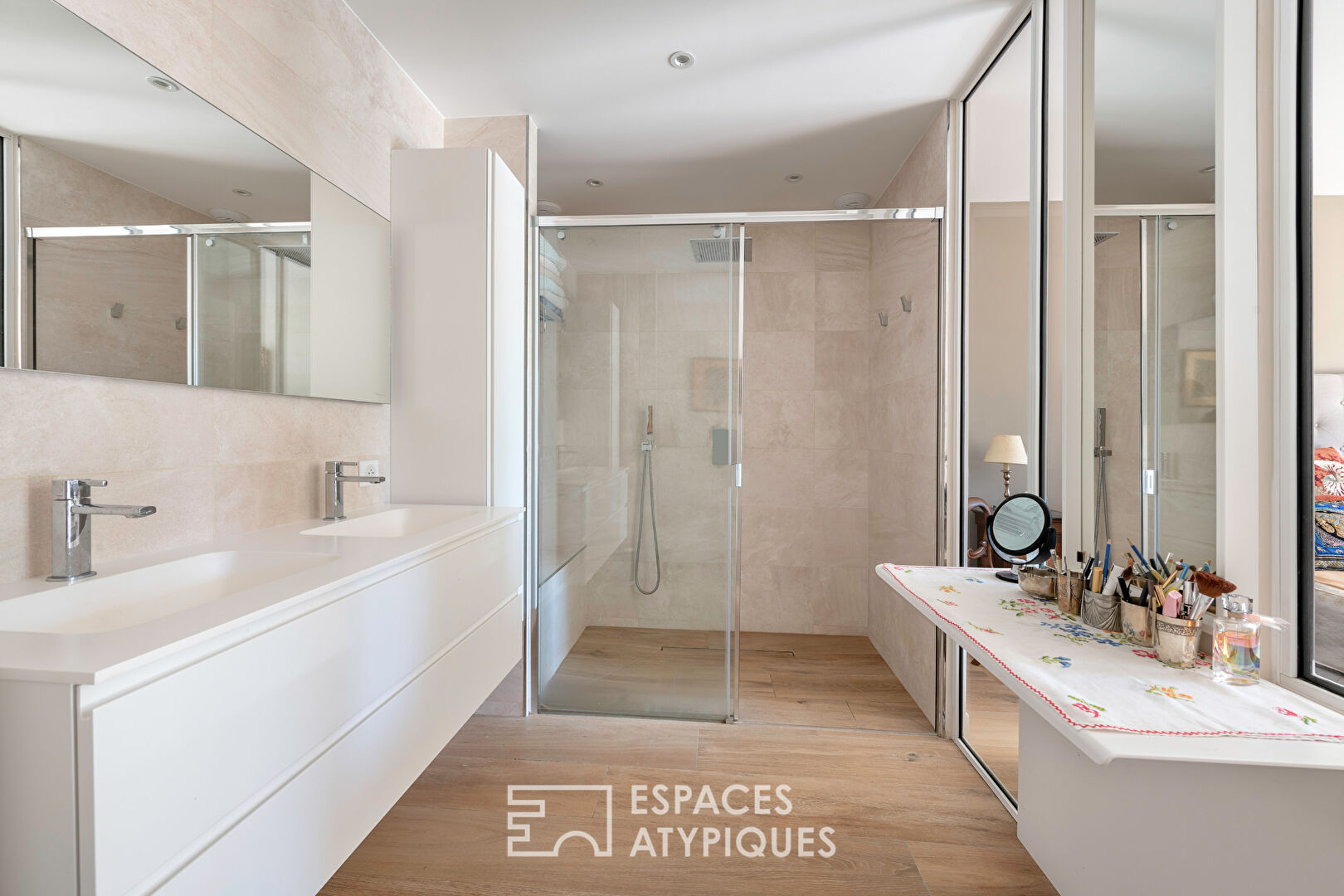 Le rez-de-chaussée, entièrement rénové avec des matériaux de qualité, offre une possibilité de vie de plain-pied