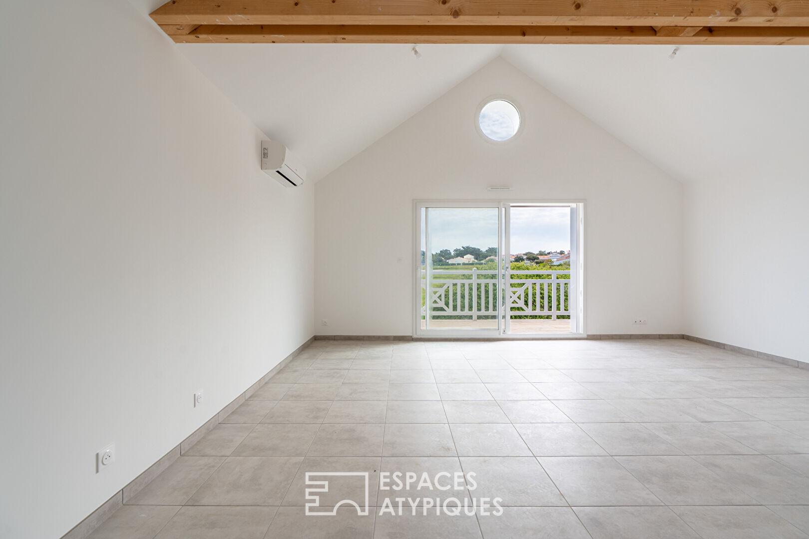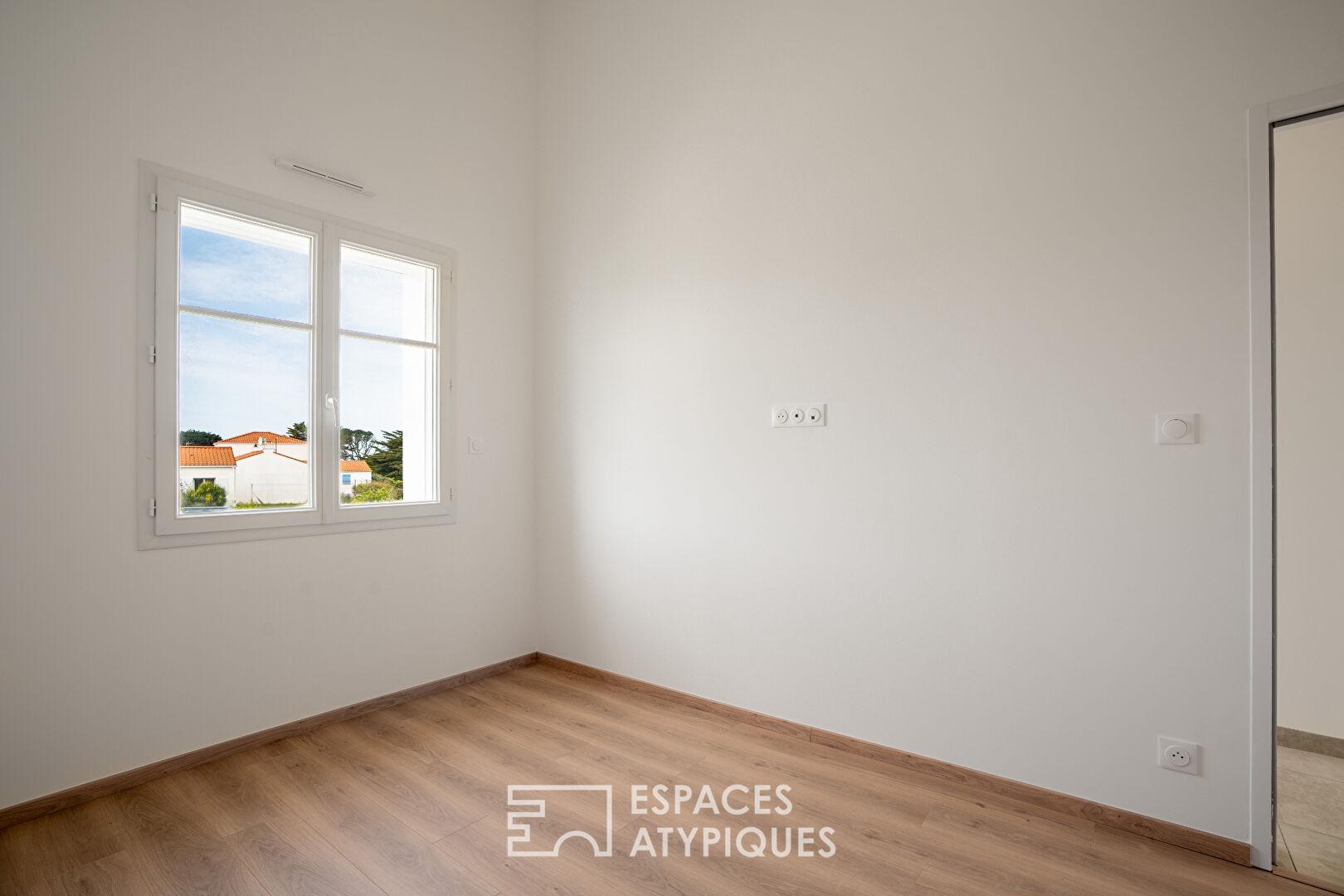 Située dans un environnement recherché à Préfailles, à quelques pas du littoral, cette élégante maison neuve de 2026 ne demande qu’à acceuillir vos meubles. Elle séduit par son esprit balnéaire et sa vue imprenable sur l’océan. Conçue avec soin, elle ore 90 m² et conjugue confort moderne, luminosité et douceur de vivre.