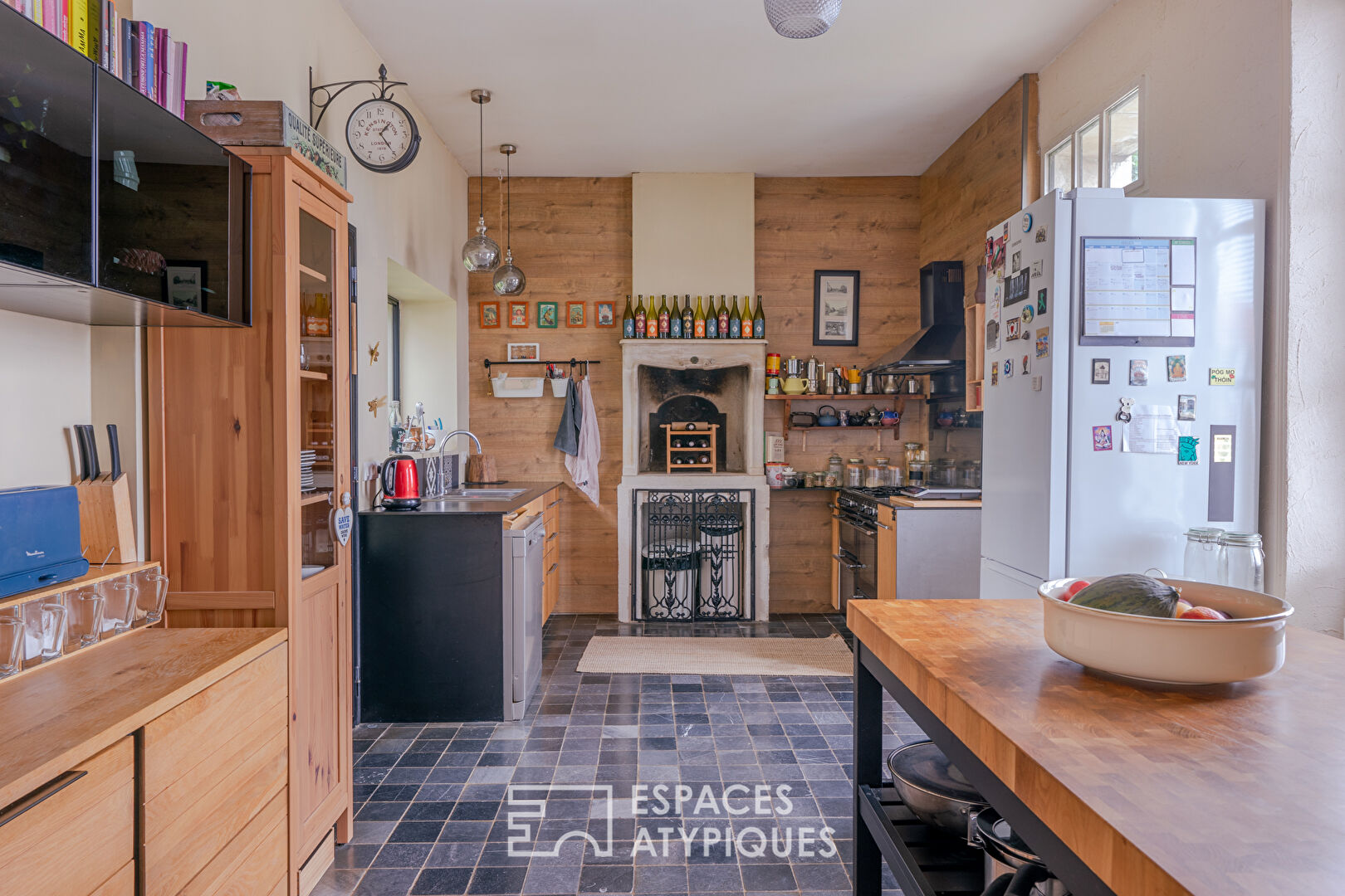 Le tout sur un sous-sol disposant de plusieurs caves. On trouve un stationnement dans la cour, un garage pouvant accueillir les 2 roues ou une petite voiture, et une piscine hors-sol. Un grand jardin arboré et entièrement clos, avec un atelier et une terrasse, vient parfaire les prestations de cette propriété unique. Commerces, écoles, et bus à quelques pas. 20 minutes de Nantes, 13 minutes de l’aéroport, 25 minutes de la mer.