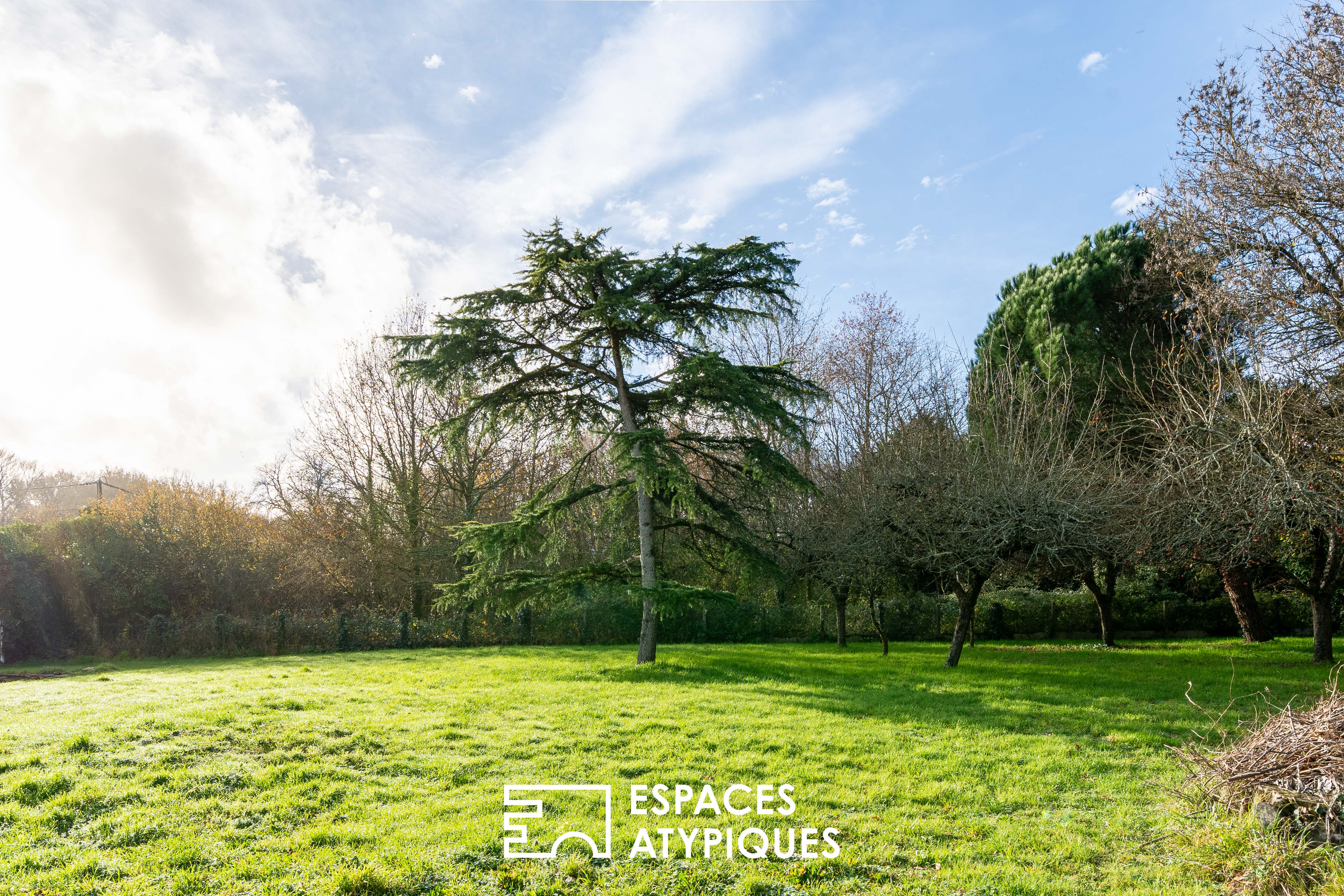 Les passionnés de bricolage ou de création apprécieront le grand garage, l’atelier ainsi que le grenier, parfait pour laisser libre cours aux projets. Le tout repose sur un beau terrain arboré d’environ 1900 m², un véritable havre de verdure.