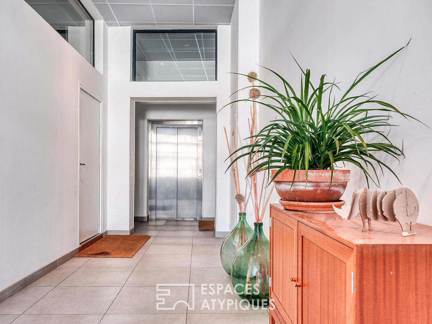 Cet appartement contemporain de 132m2 avec patio et terrasse, en second rang d’une petite copropriété avec ascenseur, est le fruit de la rénovation complète d’un ancien bâtiment industriel réhabilité.