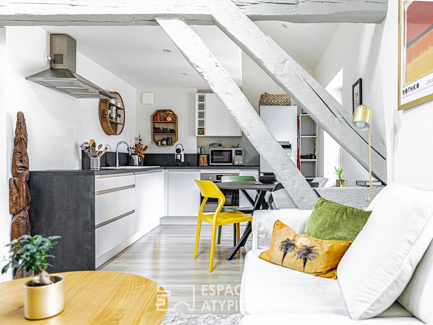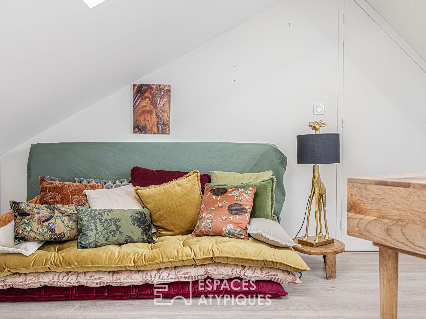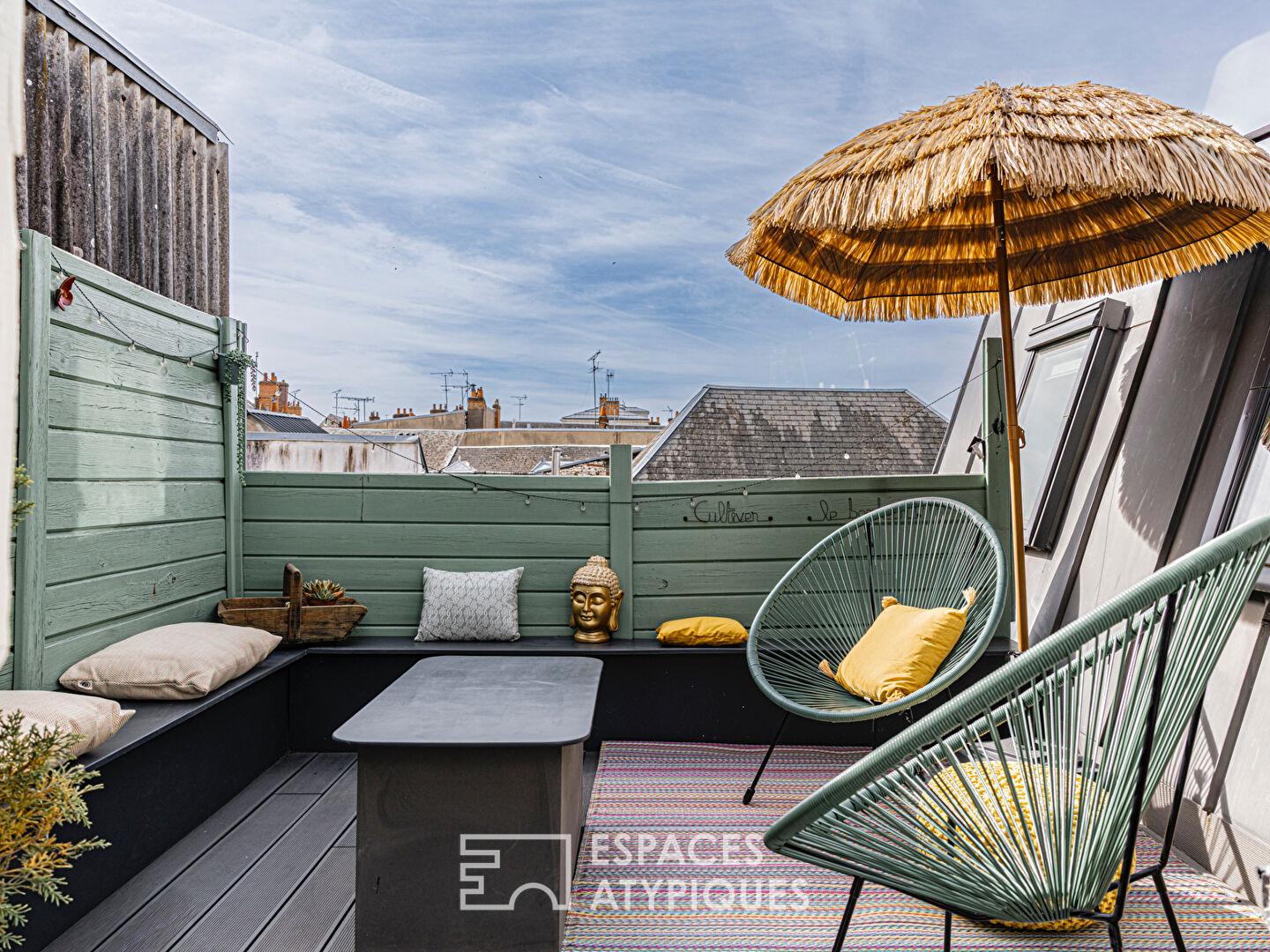 Situé à 5 min à pied de la gare et au coeur d’une petite copropriété confidentielle de seulement trois lots, découvrez ce lieu de vie singulier de 61 m² loi Carrez (73 m² au sol), niché au dernier étage, à l’abri des regards avec une jolie terrasse d’environ 10 m2.