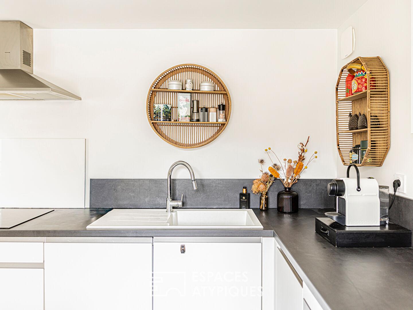 Dès l’entrée, une belle pièce de vie traversante réunie salon, espace repas et cuisine ouverte entièrement équipée, formant un ensemble harmonieux et convivial baigné de lumière.