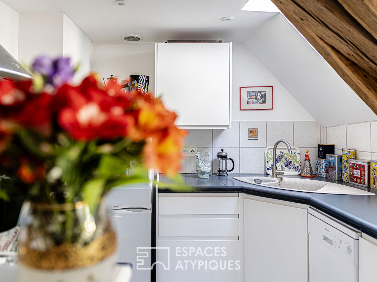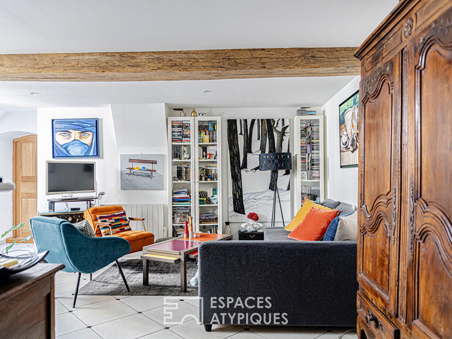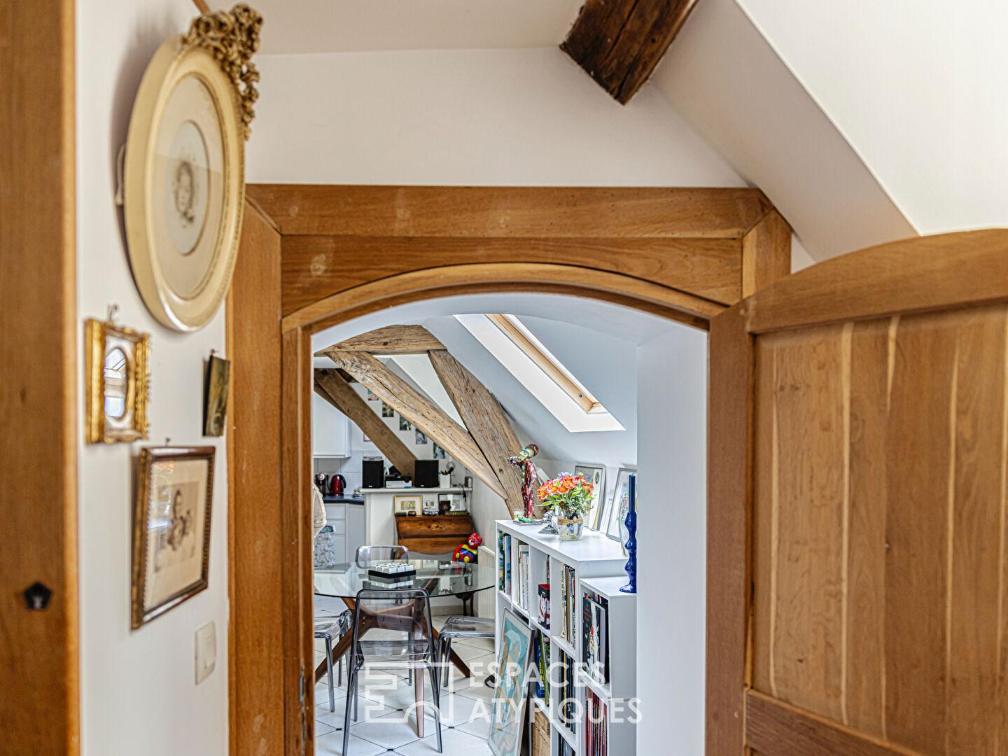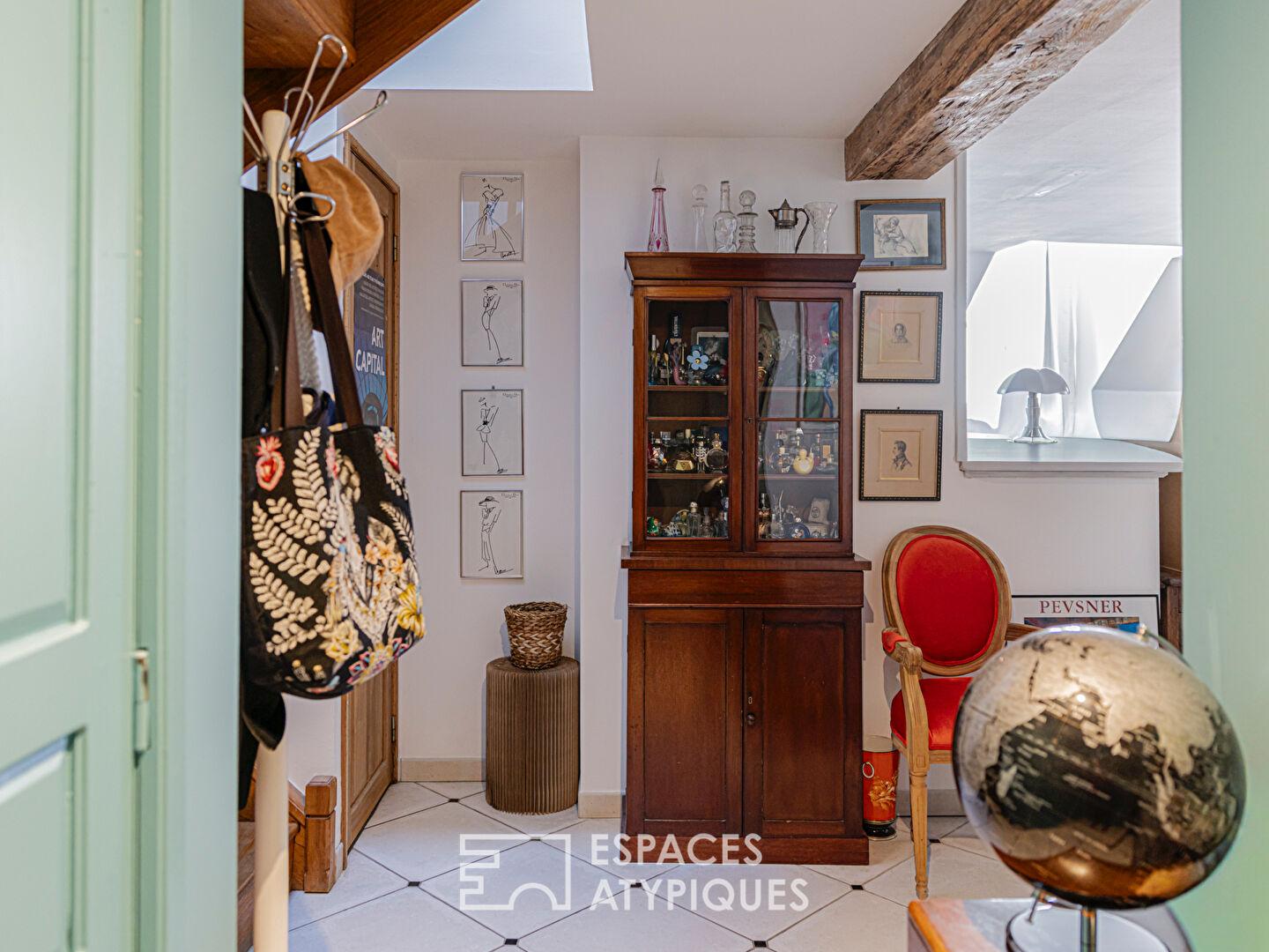 Au coeur du centre historique d’Orléans, dans un immeuble de caractère distingué par la Fondation du Patrimoine et sublimé par une rénovation complète en 2022, ce duplex singulier de 85 m² au sol (64 m² Carrez) déploie ses volumes au troisième étage, à l’abri des regards.