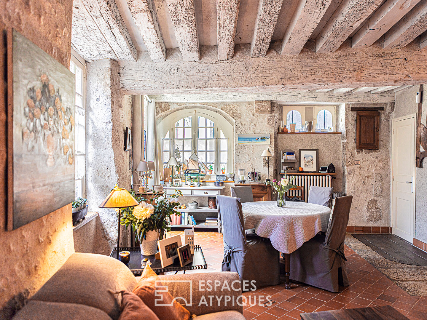 Pas de jardin ici, mais une façade emblématique, et surtout, les bords de Loire et leurs jolies promenades à seulement trois minutes à pied. Idéalement située, en plein centre historique, elle permet de profiter d’un cadre de vie dynamique : commerces, écoles, restaurants, guinguette et transports sont accessibles à pied.