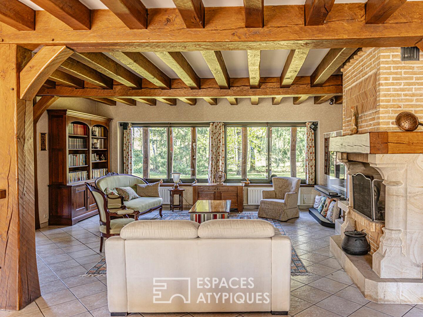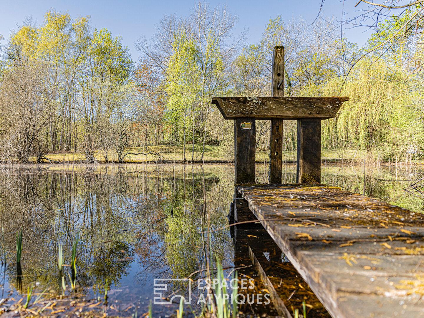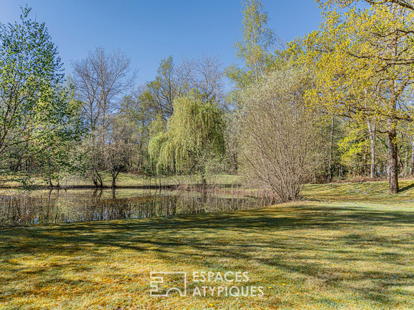 À l’extérieur, le parc arboré de près de 2,5 hectares invite à la déconnexion. Entre sous-bois, clairières et étang, le paysage offre une immersion totale dans une nature typiquement solognote, douce et enveloppante.