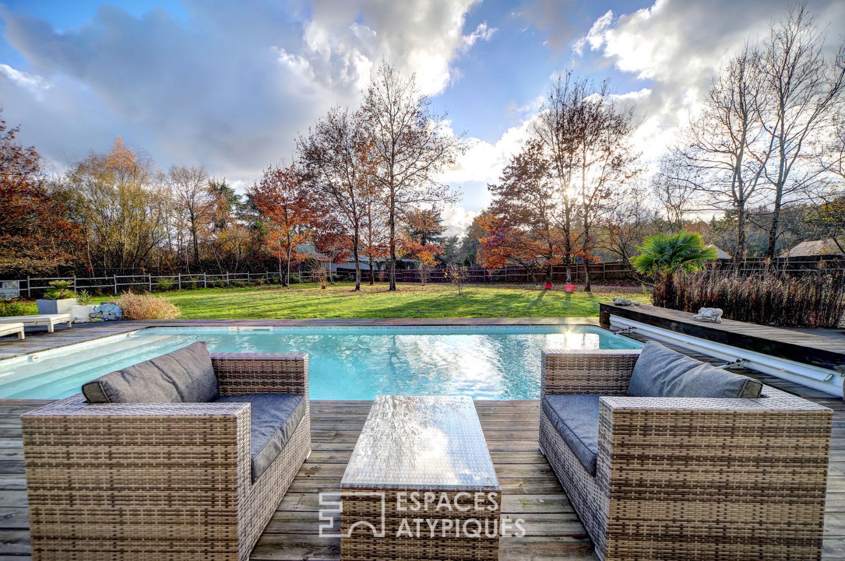 Maison contemporaine ossature bois avec piscine et gîtes