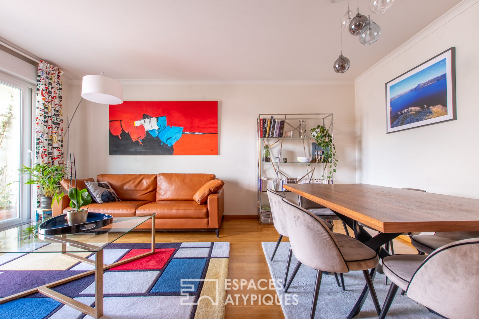 Son balcon bien orienté avec sa jolie vue, son ascenseur, son garage couvert et sa cave en font des atouts indispensables.