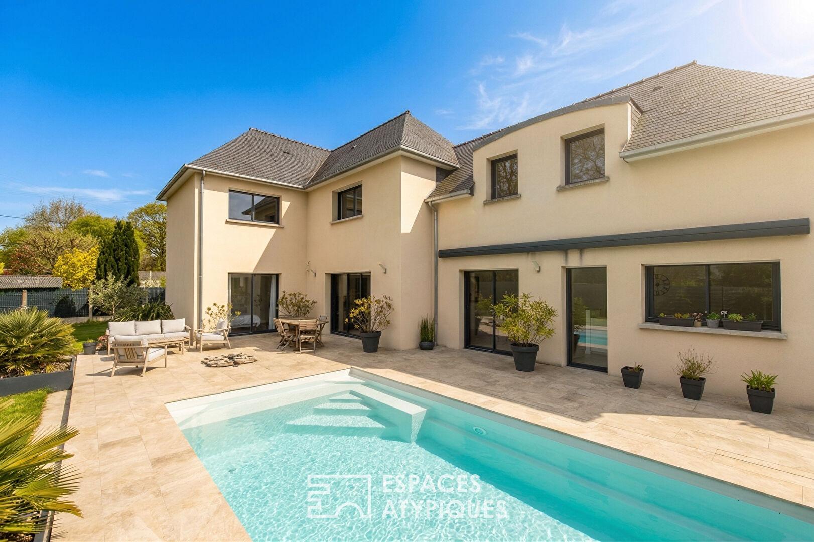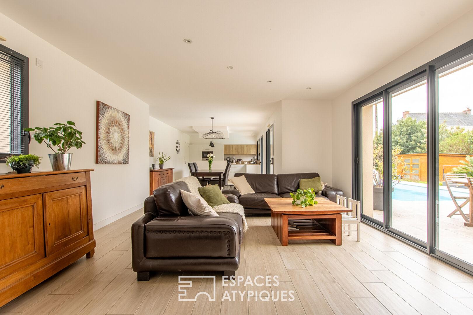 Cette élégante maison contemporaine, édifiée il y a seulement six ans, bénéficie d’un emplacement privilégié à Bouchemaine, commune remarquable inscrite au patrimoine mondial de l’UNESCO.
