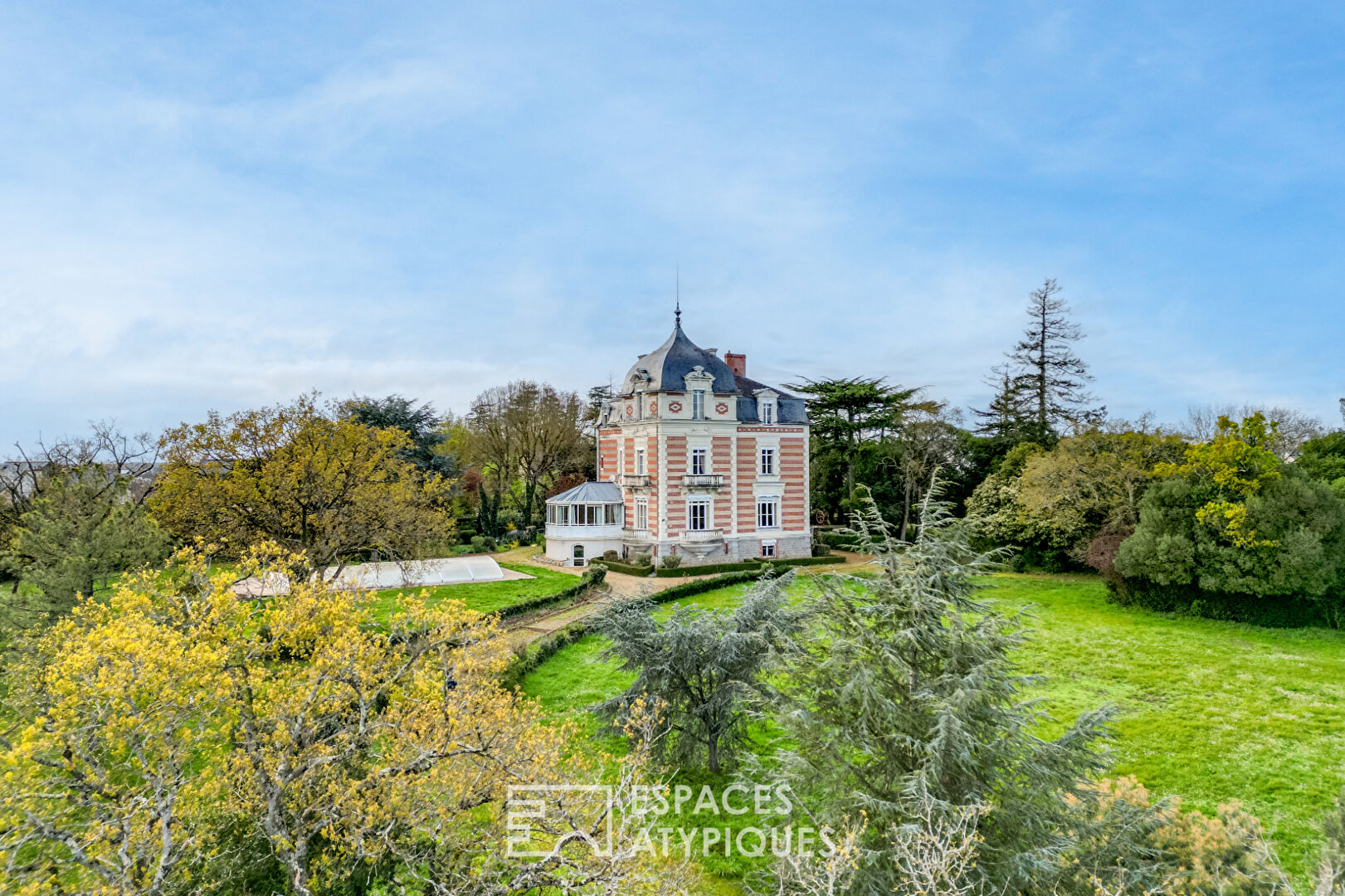 Une allée arborée dévoile cette propriété aussi élégante qu’imposante, érigée en hommage à l’Anjou et à ses paysages riverains. Son architecture raffinée, mélange de briques et de pierres, encadrements travaillés et toitures élégantes, incarne le prestige d’antan. Une véranda plein sud et un vaste perron ouvrant sur l’entrée principale, complète ce petit château à taille humaine suspendu hors du temps.