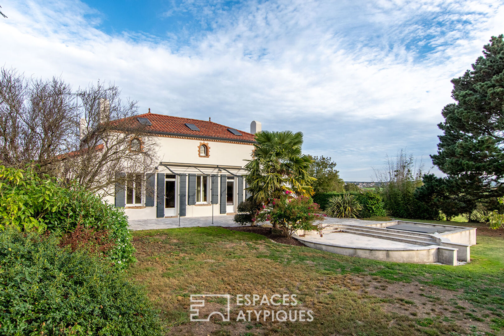 Située en campagne, sur les hauteurs de Saint-Christophe du bois, cette bâtisse de 190 m² de surface habitable sur une parcelle de 2 340 m² inspire la sérénité et l’apaisement.