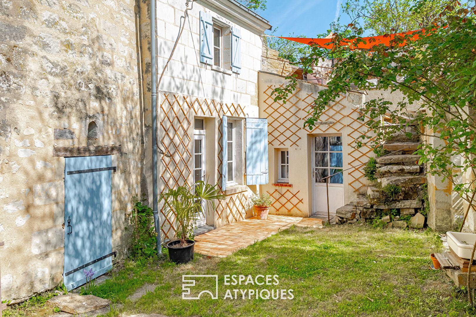 Cette maison semi-troglodyte, issue d’une rénovation de goût sublimant le caractère ancien du lieu, séduit par son authenticité et son environnement paisible et naturel, typique des bords de Loire. Le terrain en surplomb, offrant une vue dégagée sur la Loire et les toits du village, constitue un véritable atout et invite à la découverte d’un lieu confidentiel et inspirant.