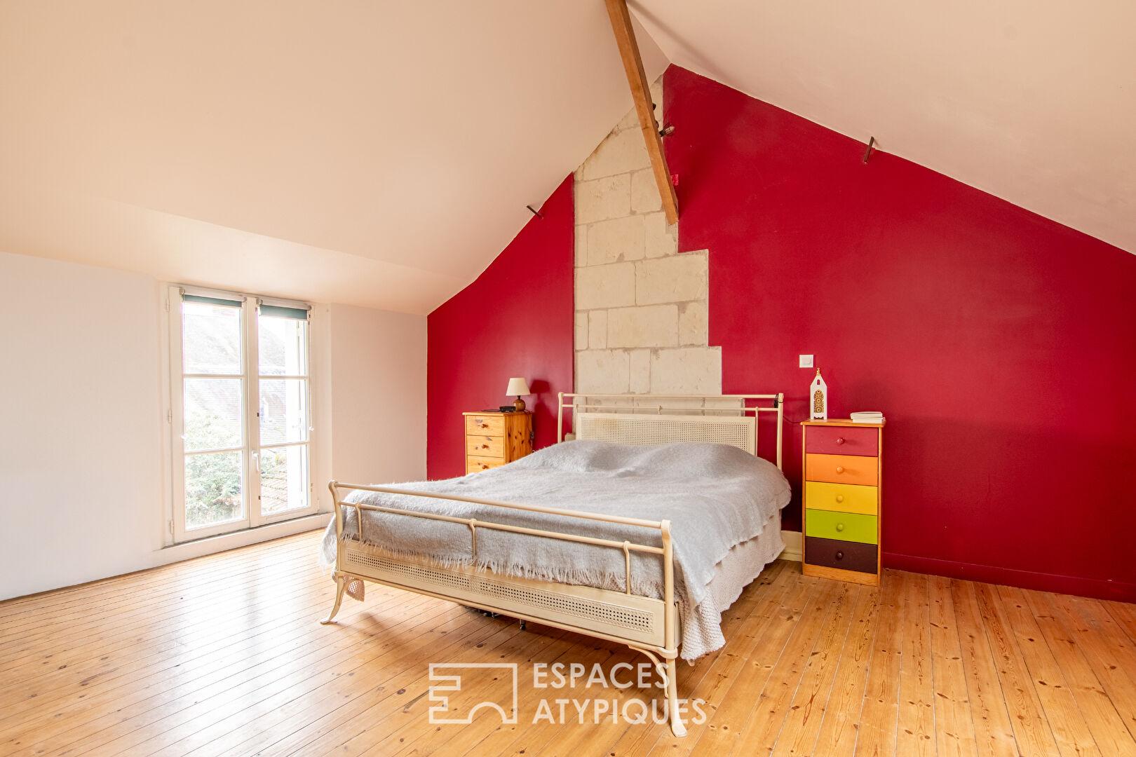 Cette demeure du XIXe siècle se distingue par son authenticité et ses volumes, typiques des bâtisses de tuffeau ligériennes. Hauteurs sous plafond, boiseries, sols anciens et cheminées composent une atmosphère chaleureuse et vivante. L’ensemble nécessite aujourd’hui un rafraîchissement intérieur, laissant place à une réinterprétation contemporaine et à la création d’un lieu singulier mêlant patrimoine et modernité.