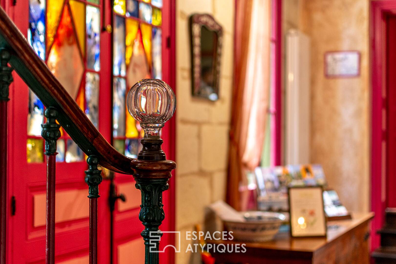 Authentique maison de maître, la résidence principale du XVIIIe/XIXe siècle avoisine les 385 m² et offre généreusement sept suites ainsi qu’une chambre supplémentaire. Cette demeure possède également plusieurs salons permettant de recevoir avec aisance et compte également sur un bow-window apportant une très belle luminosité intérieure. Les tommettes, parquets, moulures ainsi que la pierre de tuffeau rappellent à chaque instant la très belle promesse d’un temps révolu.