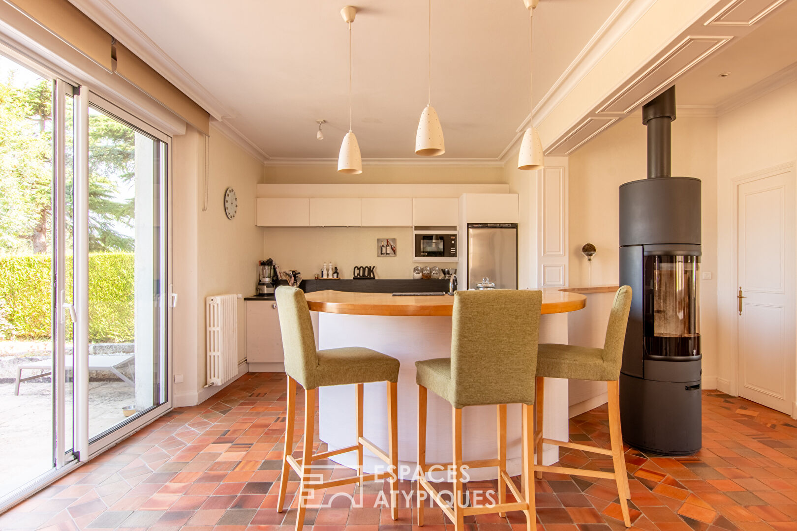 L’ensemble comprend une élégante maison principale faisant face à de ravissantes dépendances. Elle se distingue par son authenticité, son calme apaisant et une luminosité exceptionnelle.
