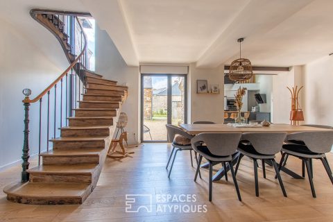 Située au coeur du centre-ville de Candé, cette maison rénovée avec goût déploie environ 176 m² habitable sur une étonnante parcelle de 1082 m² entourée de hauts murs. Cet ensemble immobilier se compose d’une maison d’habitation, d’un commerce d’environ 80 m2 loué et deux dépendances à rénover, idéal pour un projet de gite.