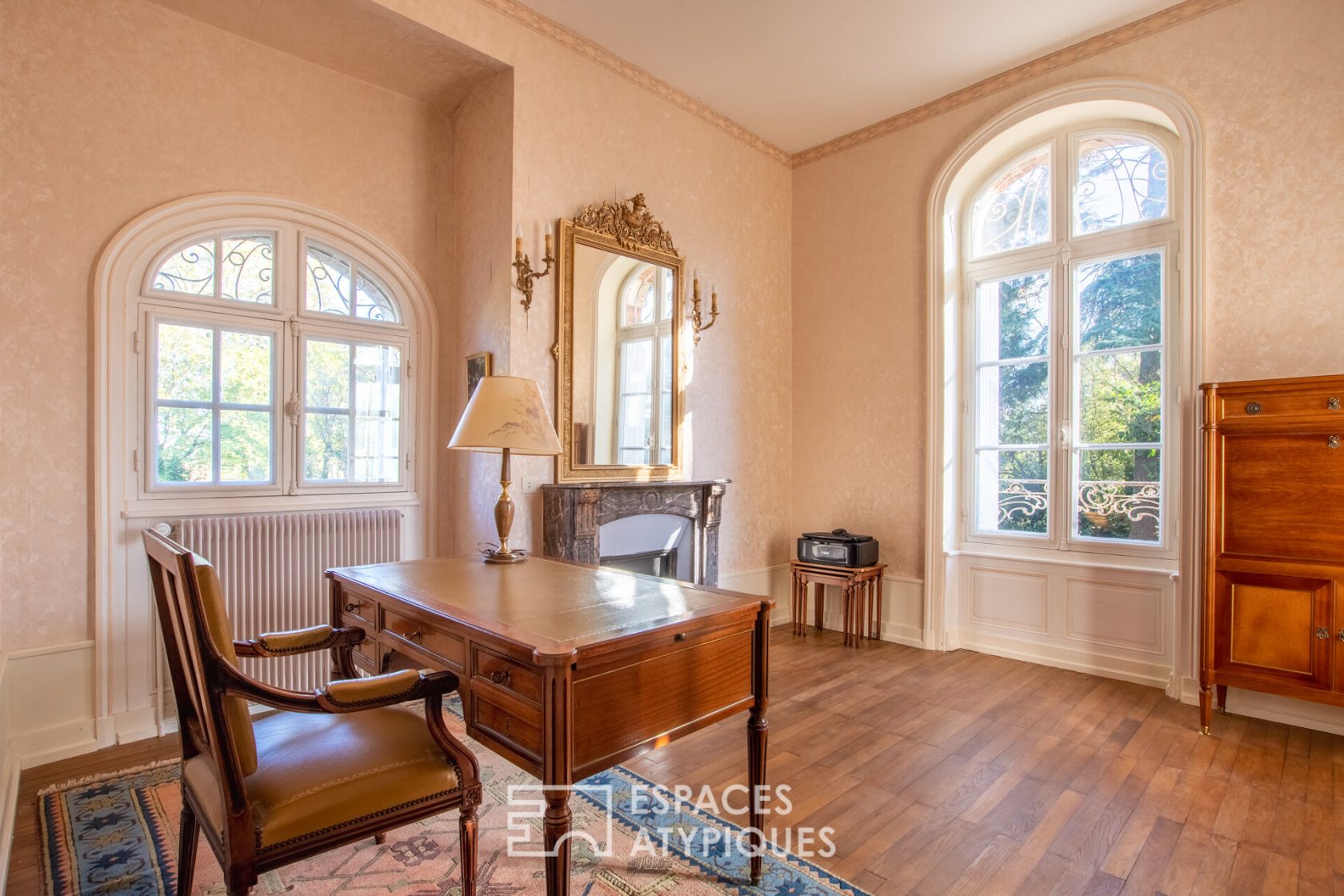 Cette demeure est complétée par un grenier aménageable de 55 m2, de grandes caves de 117 m2 à fort potentiel, d’une ancienne maisonnette de gardien indépendante de 48 m2 à rénover avec son garage deux places, et d’un jardin-verger avec piscine couverte en très bon état de fonctionnement.