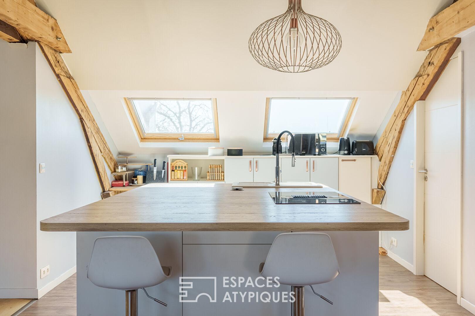 Ce loft sous les toits offre une expérience de vie suspendue, entre patrimoine et modernité. Une découverte s’impose pour saisir toute la sérénité de ce refuge urbain.