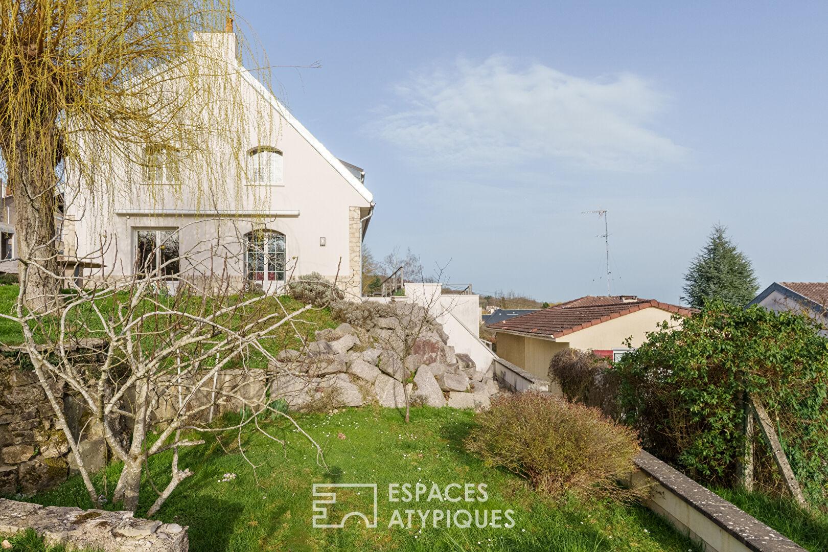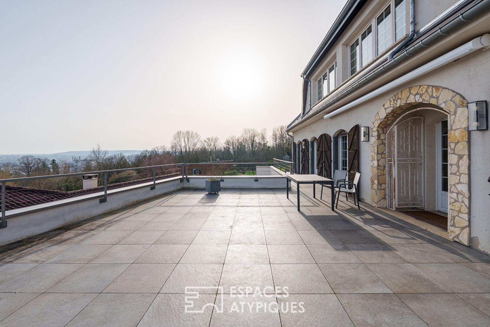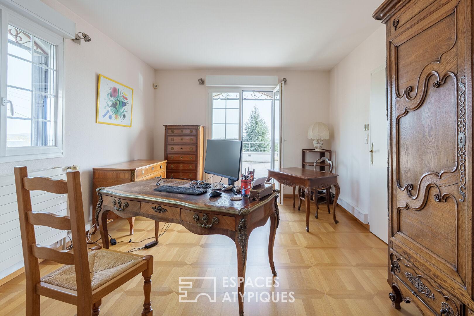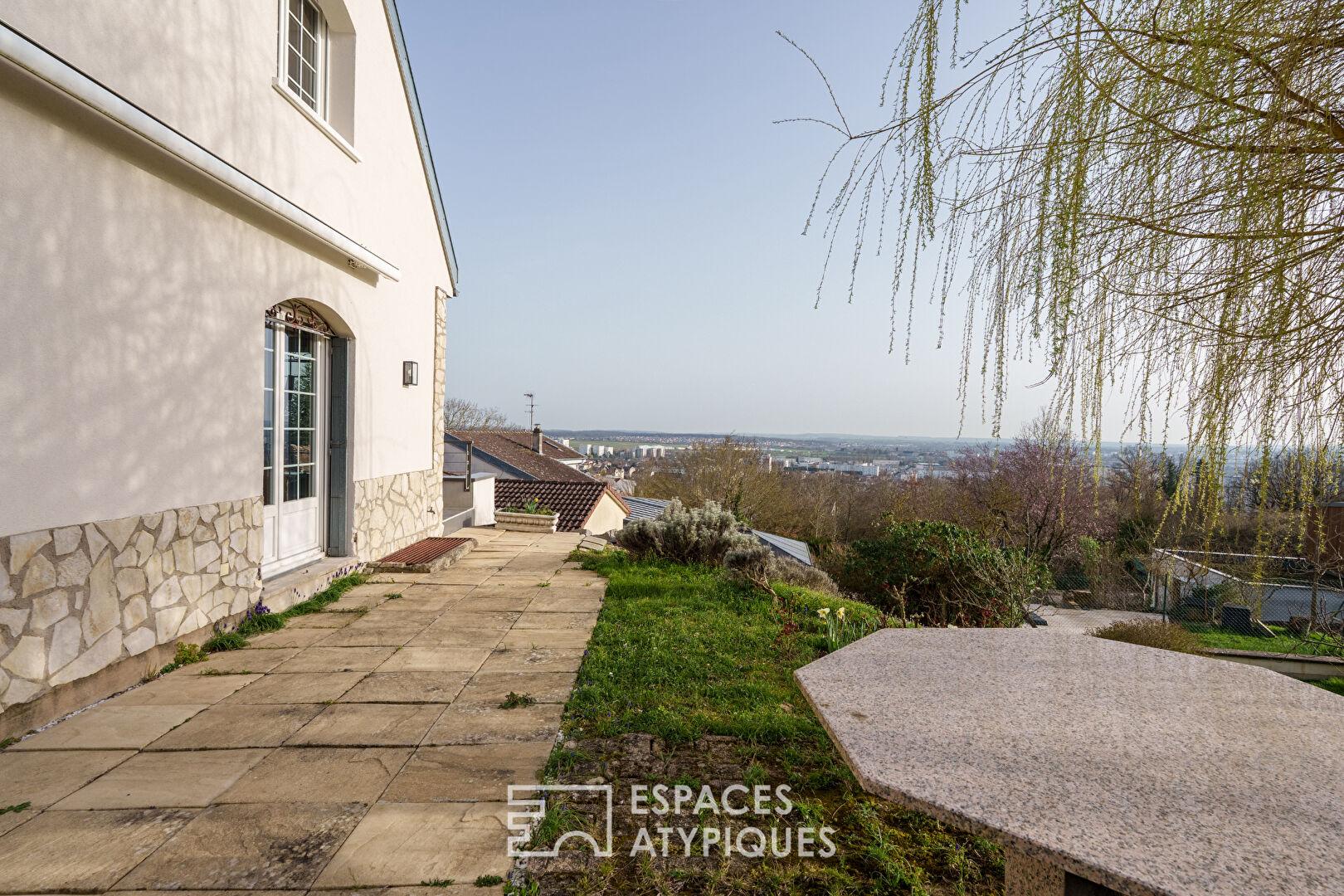 Maison sur les hauteurs et sa terrasse avec vue contemplative