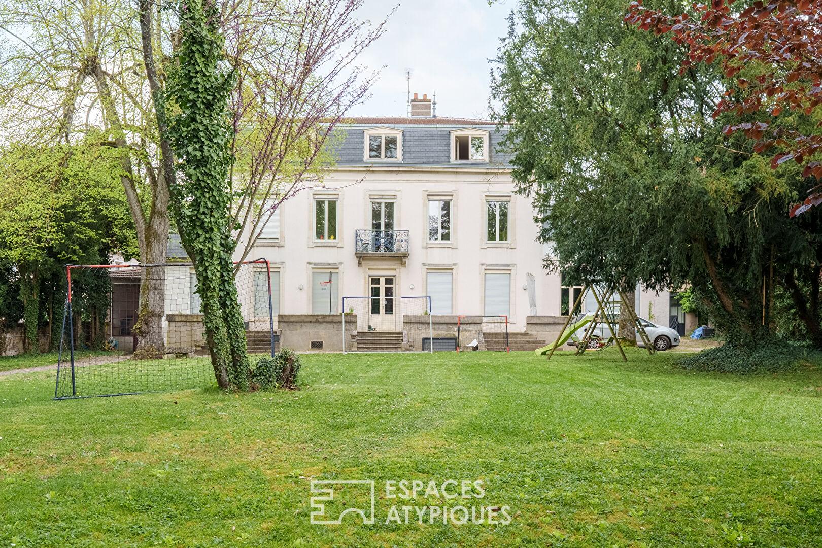 Au deuxième et dernier étage d’une demeure de prestige du Comte de la Salle, cet appartement de 112 m² occupe l’intégralité du niveau supérieur, offrant une configuration confidentielle et une triple exposition. Nichée au coeur d’un parc arboré clos où trône un majestueux tulipier de Virginie, cette propriété d’exception dispose d’un cadre de vie verdoyant et calme, tout en bénéficiant de la proximité immédiate des commerces et des infrastructures scolaires accessibles en quelques minutes. Le quartier, prisé pour son calme et son patrimoine, offre un équilibre parfait entre nature et services urbains.