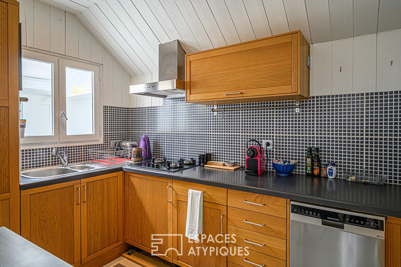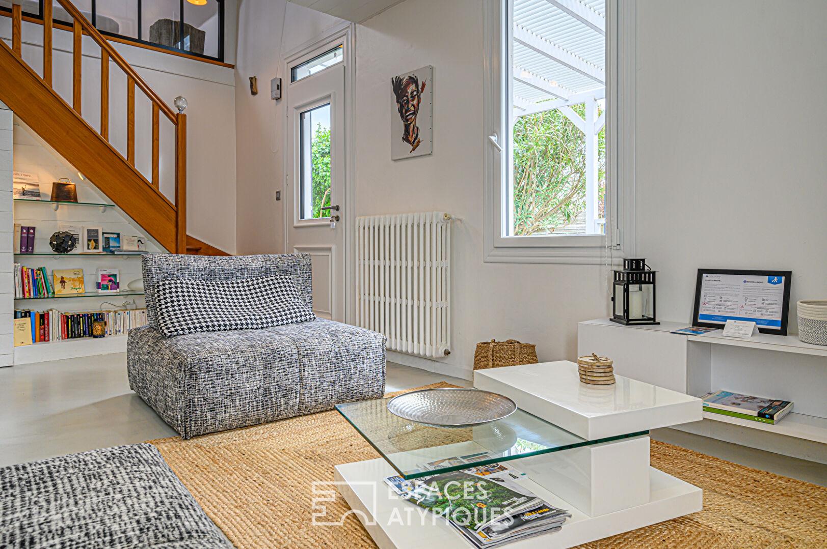 Deux espaces attenants, accueillant un jardin d’hiver et une buanderie fonctionnelle, complètent l’organisation de ce bien singulier.