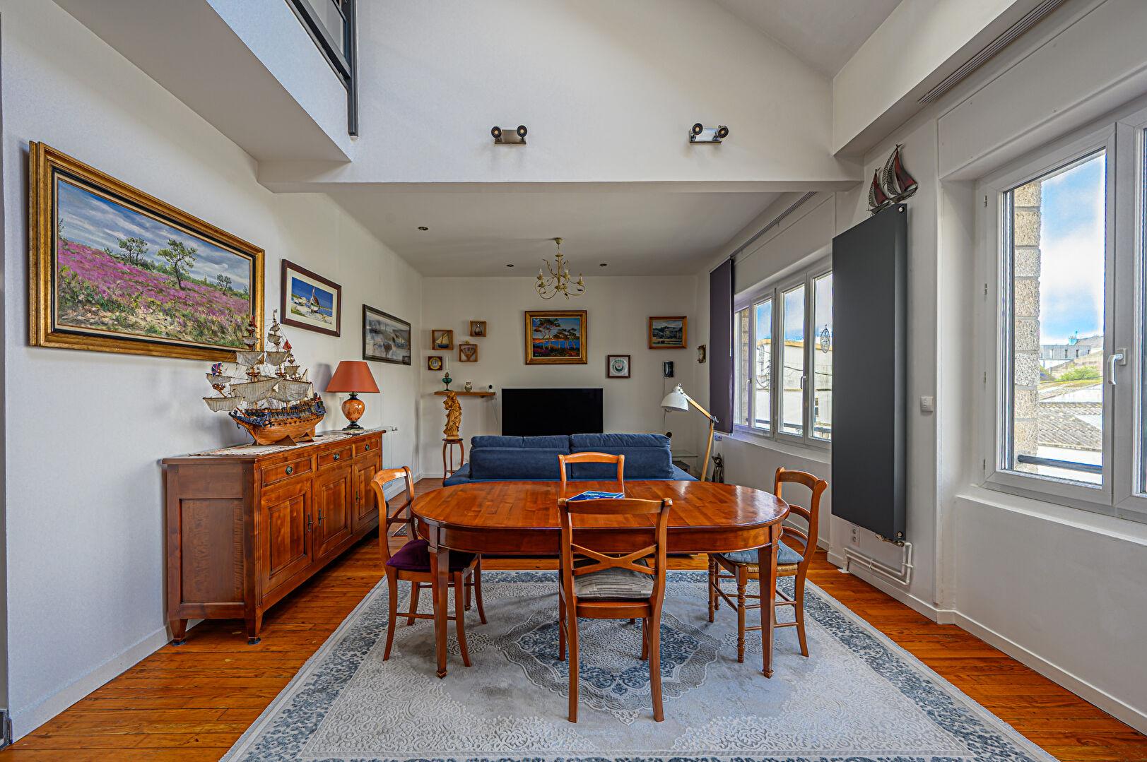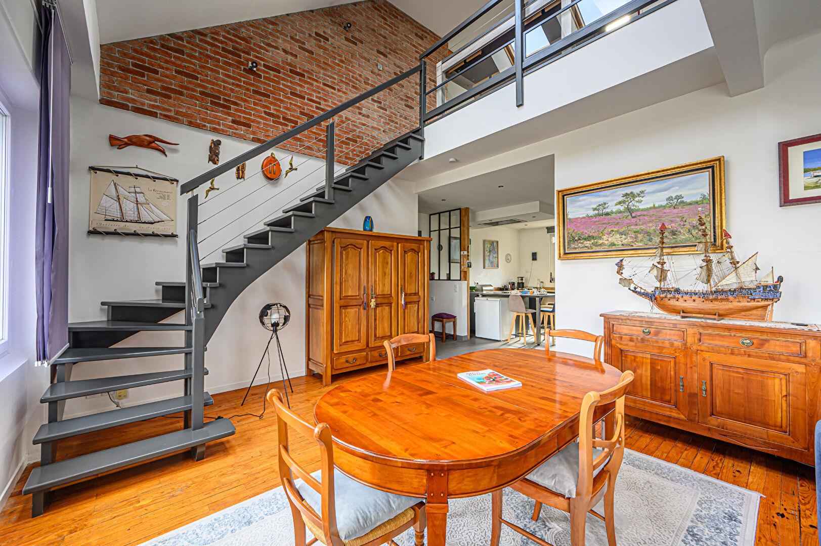 Situé à Lorient, à proximité immédiate du centre-ville et de la gare TGV, ce duplex rénové d’environ 130 m² au sol prend place au dernier étage d’une ancienne imprimerie réhabilitée, dans un quartier en pleine évolution.