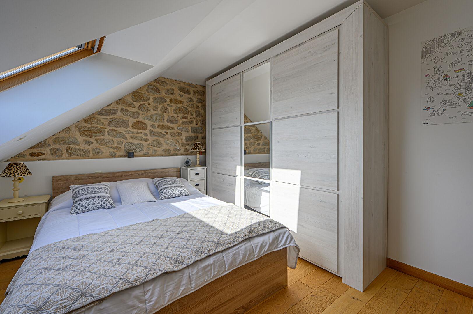 Le niveau principal accueille également une chambre avec dressing et salle d’eau privative, tandis que deux autres chambres et une autre salle d’eau complètent l’étage, offrant un cadre de vie confortable et fonctionnel.