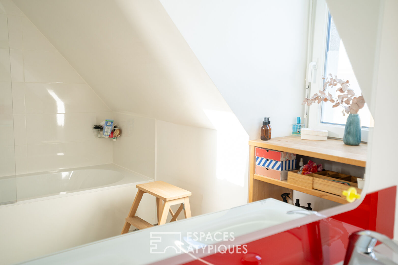 Le garage attenant, le sous-sol complet ainsi qu’un grenier optimisent la surface de stockage et facilitent le quotidien.