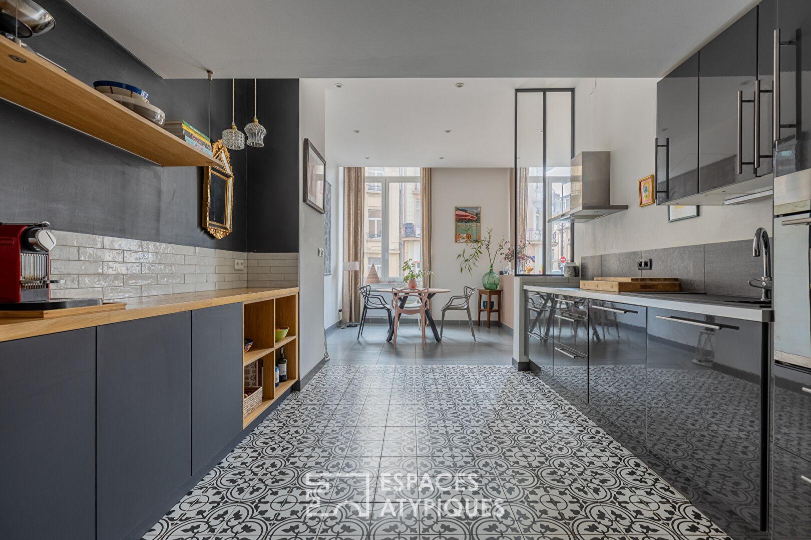 Anciens locaux bancaires réinterprétés, cet appartement de 211 m² carrez se développe sur trois niveaux au sein d’un immeuble de caractère dans le quartier Nouvelle-Ville. Situé à moins de 5 minutes à pied de la gare, ce lieu de vie singulier propose une organisation spatiale originale, caractéristique des réhabilitations de surfaces professionnelles.