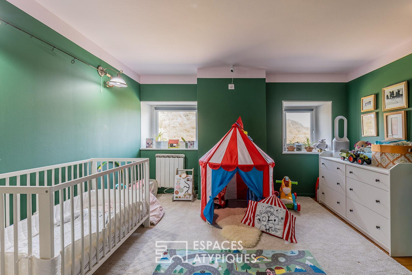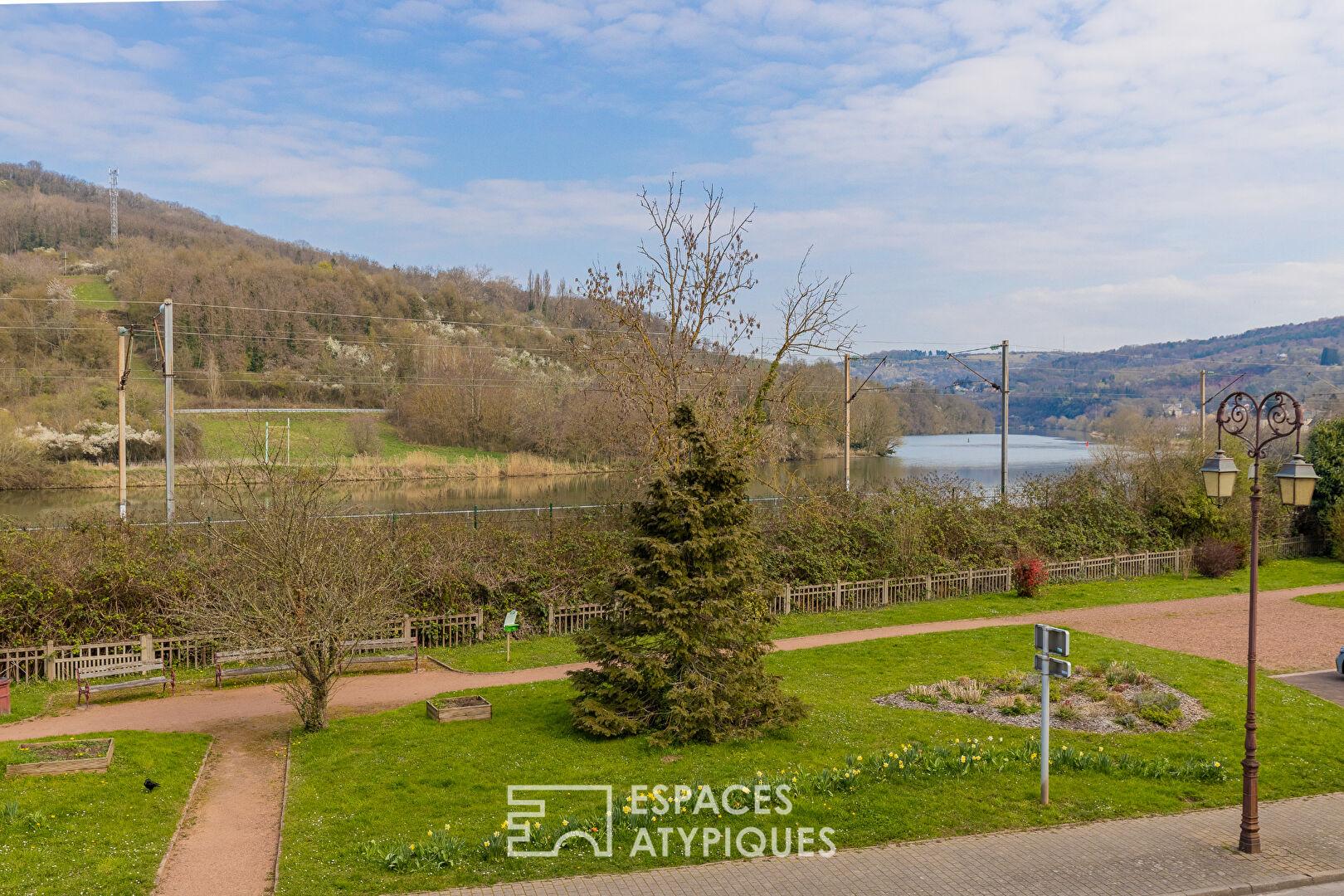 Sur les rives de la Moselle, au sein d’une bâtisse historique, ce duplex de 173 m² carrez (environ 200 m² au sol) est le fruit d’une métamorphose radicale achevée il y a trois ans. Derrière sa façade discrète se cache un lieu de vie singulier, où l’ancien dialogue avec une rénovation aux prestations haut de gamme. Ce bien clé en main se distingue par son organisation architecturale en demi-niveaux et son patio central, véritable respiration à l’abri des regards.