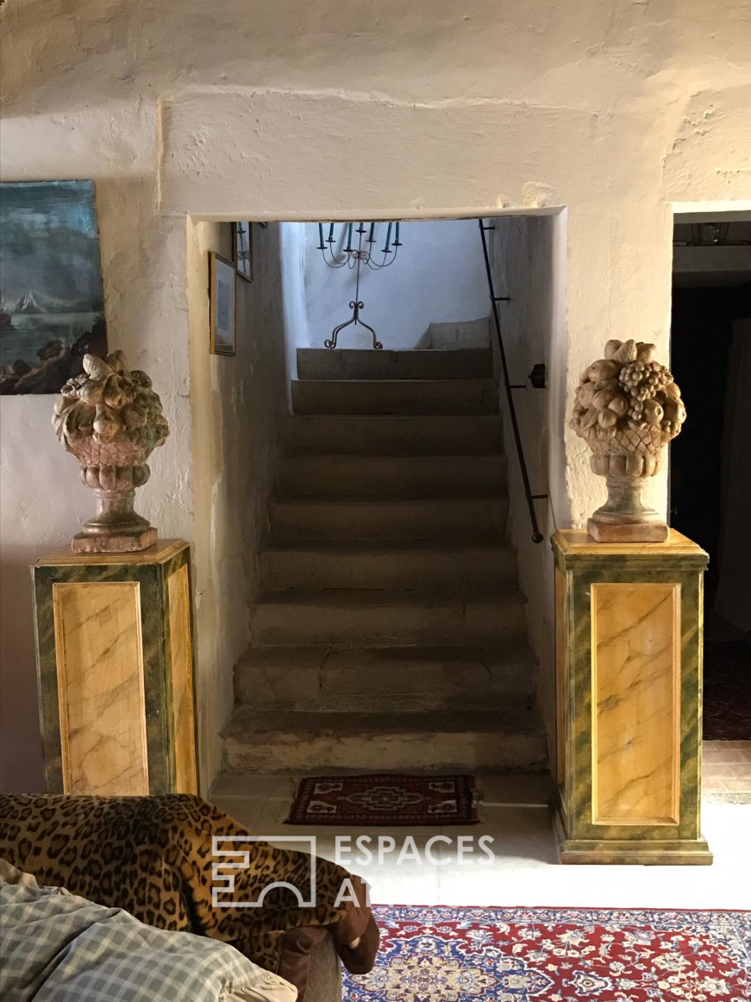 L’entrée s’ouvre sur l’accès vers une belle cave voutée. Un salon cosy avec une superbe cheminée et une cuisine d’été avec ses carreaux de ciment, prennent place à ce niveau permettant de profiter de l’accès au jardin de plain pied. L’escalier en pierre mène au premier étage où l’on découvre une salle à manger de 35m2 traversante avec une terrasse, une cuisine équipée, une première chambre avec sa salle d’eau.
