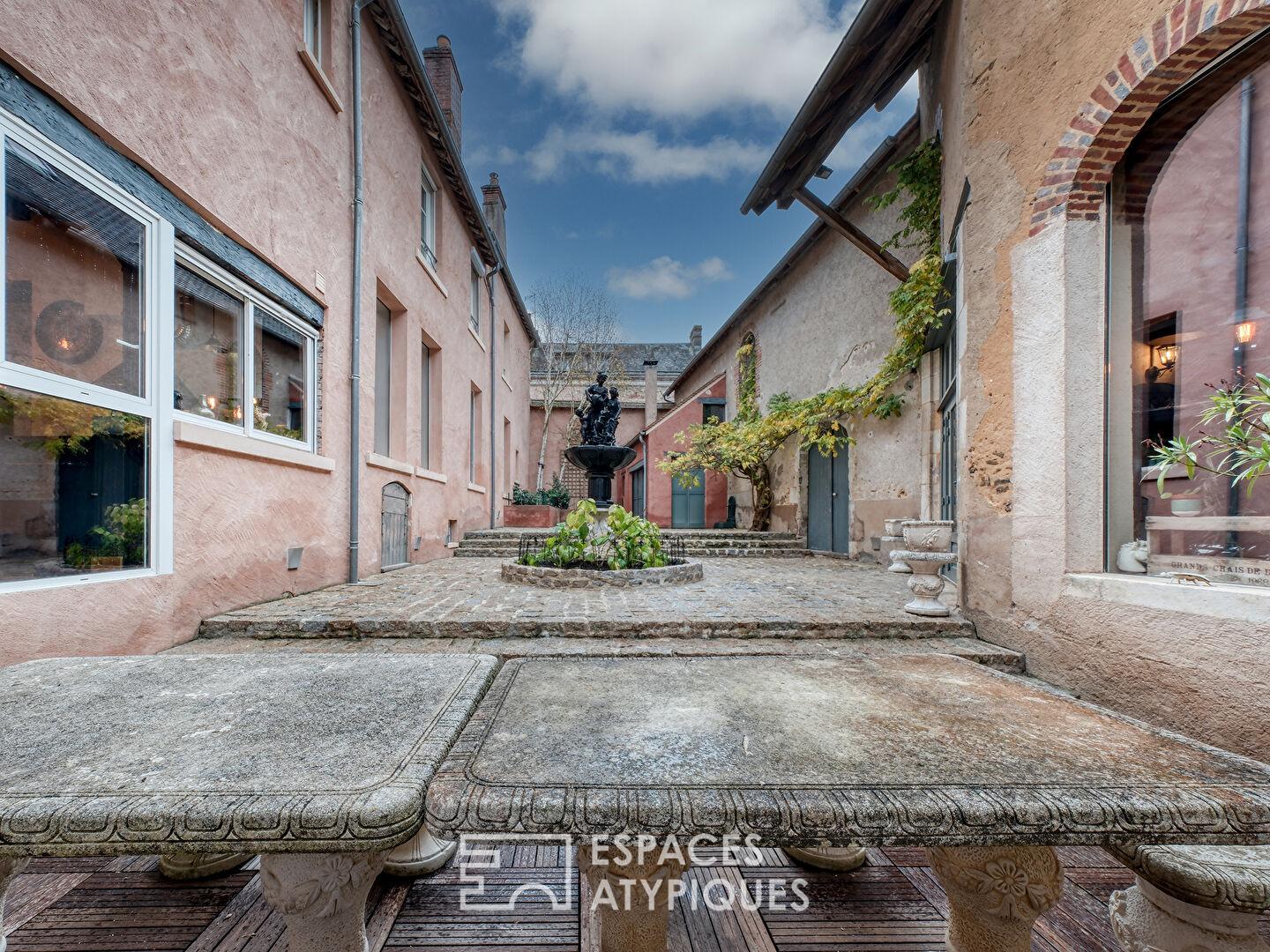 À 185km de Paris, située au coeur de Saint-Amand-en-Puisaye, cette propriété du XIXeme de 394 m² habitables se déploie autour d’une cour intérieure, offrant un cadre confidentiel aux allures méditerranéennes.