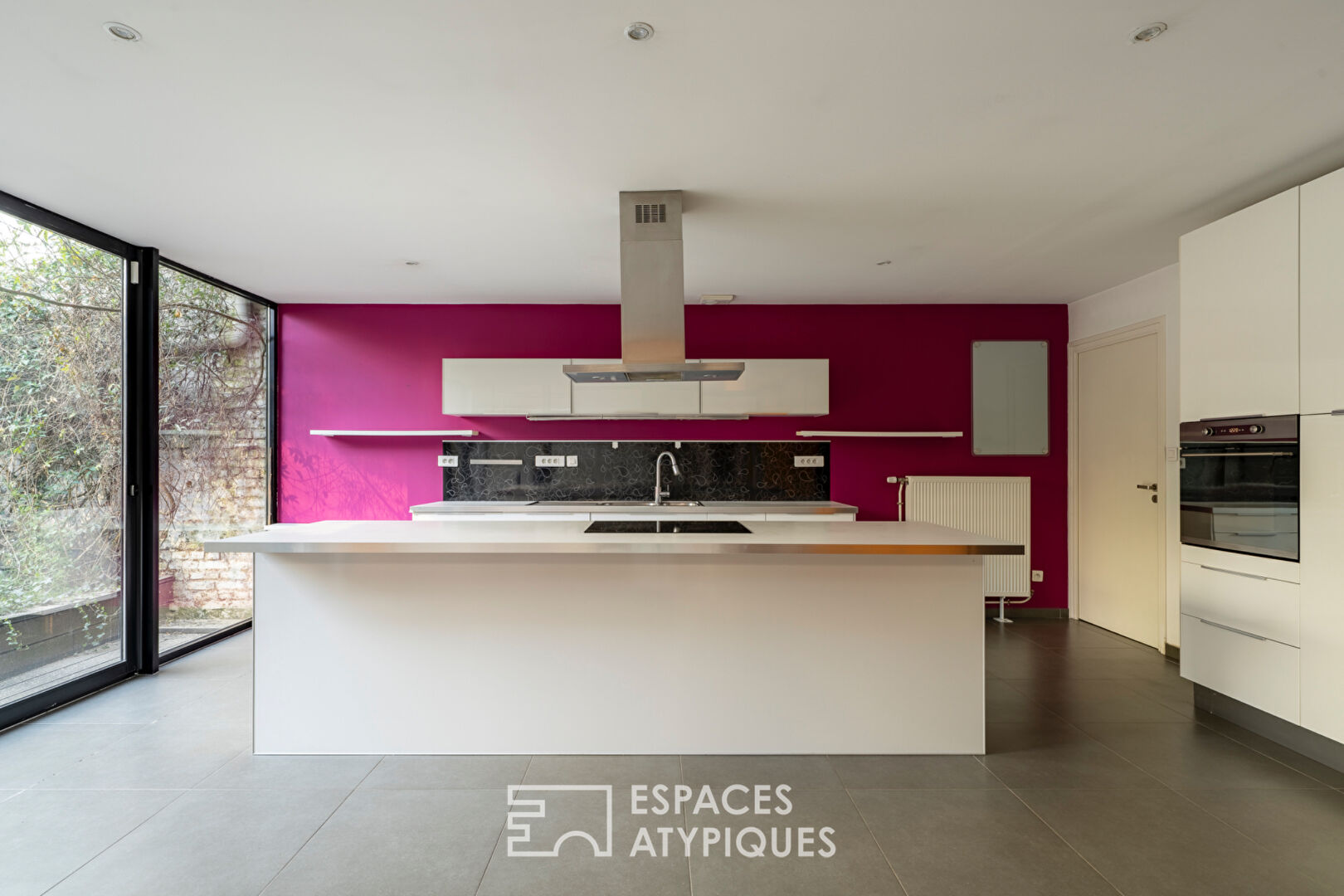 Caché derrière une façade discrète, cet ancien garage réhabilité en loft développe près de 270 m² d’espaces de vie baignés de lumière, où le caractère brut de l’origine industrielle a été sublimé par une rénovation soignée.
