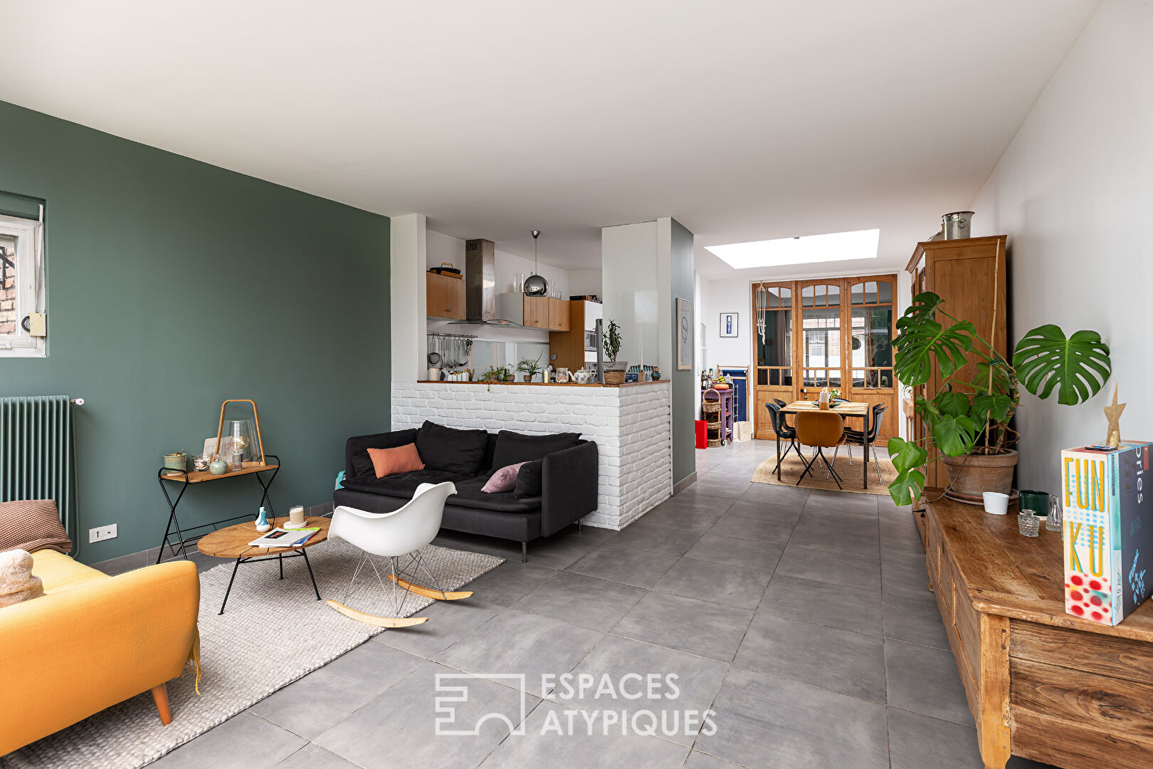 Au cœur du quartier très prisé du Canon d’Or, à seulement cinq minutes de la Citadelle, cette maison de ville de 275m2 est le fruit d’une réunion audacieuse de deux bâtisses des années 30 offrant ainsi une modularité rare sur le marché lambersartois.