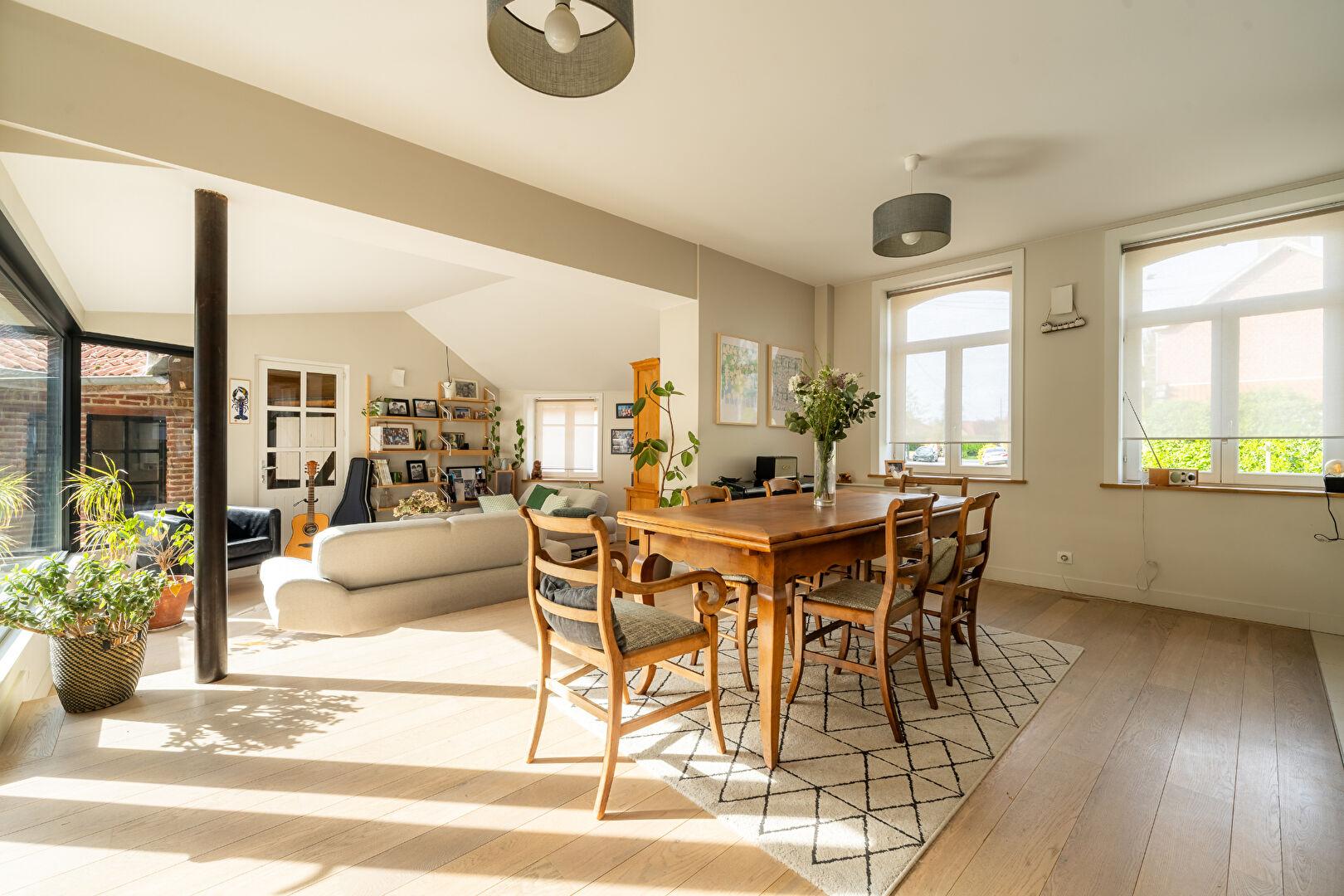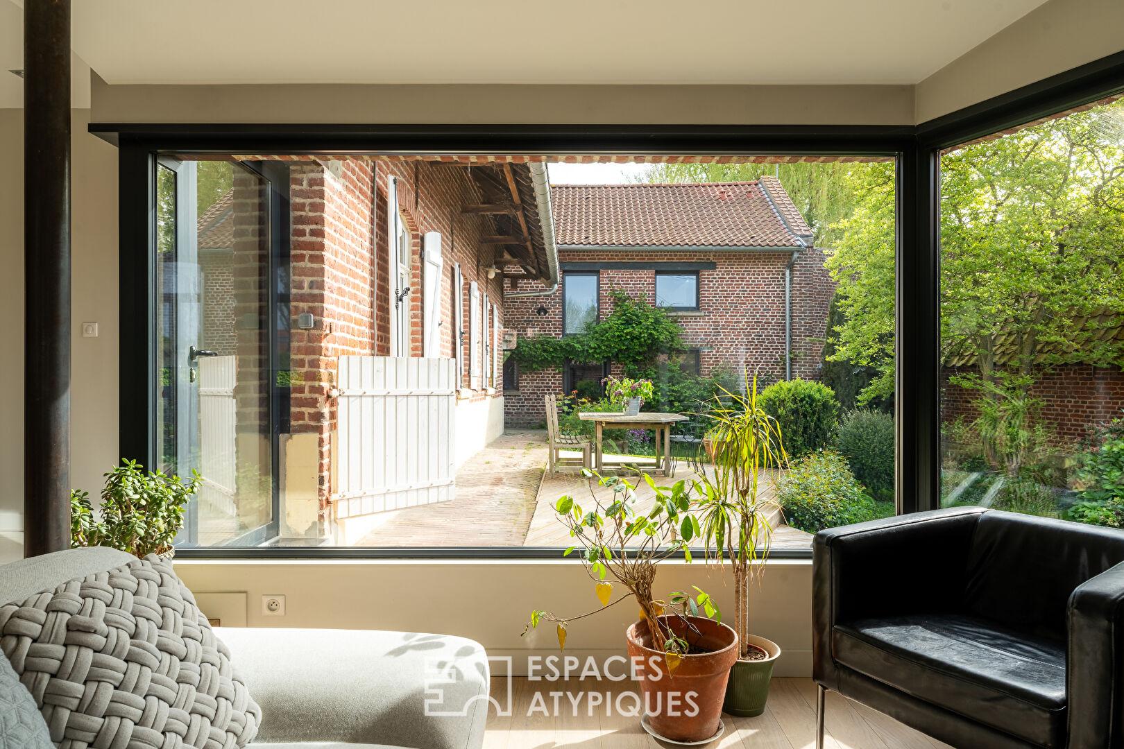 Au cœur d’un hameau des Weppes, à deux pas de Beaucamps-Ligny, cette ferme au carré de 330 m², rénovée par un architecte, offre un cadre de vie bucolique où l’on se sent immédiatement ailleurs.