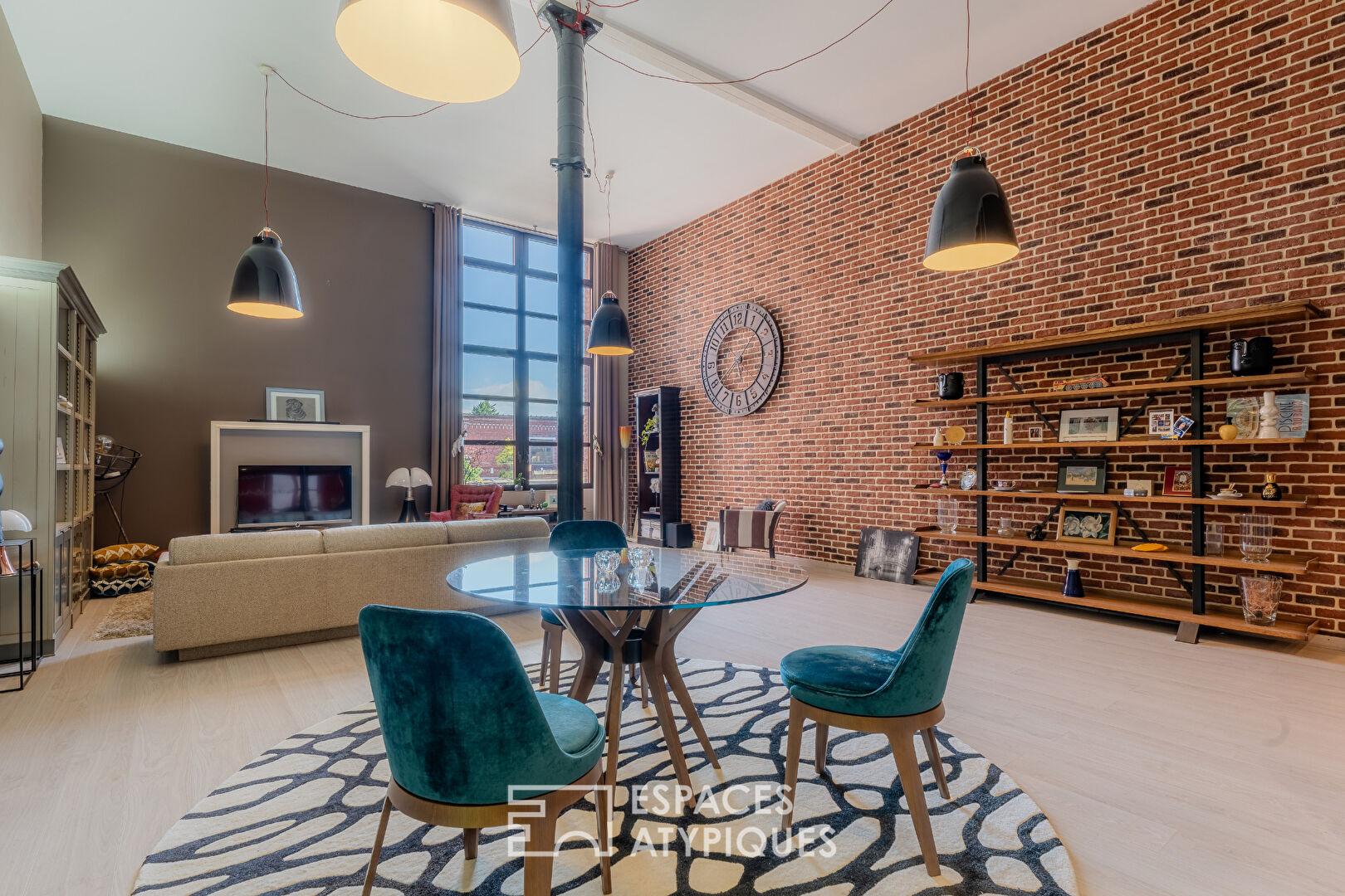 Face au parc de la Cotonnière, au cœur du quartier du Virolois, ce loft de 157,90 m² Carrez prend place dans une ancienne filature réhabilitée.