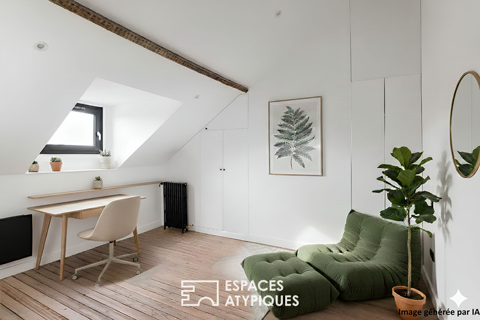 Le dernier étage impressionne par sa suite en mezzanine de 38 m² avec dressing, tandis que le deuxième étage offre une chambre avec balcon privé. Au rez-de-chaussée, une cinquième pièce, composée d’un bureau de 12 m², complète les prestations de cette propriété de prestige.