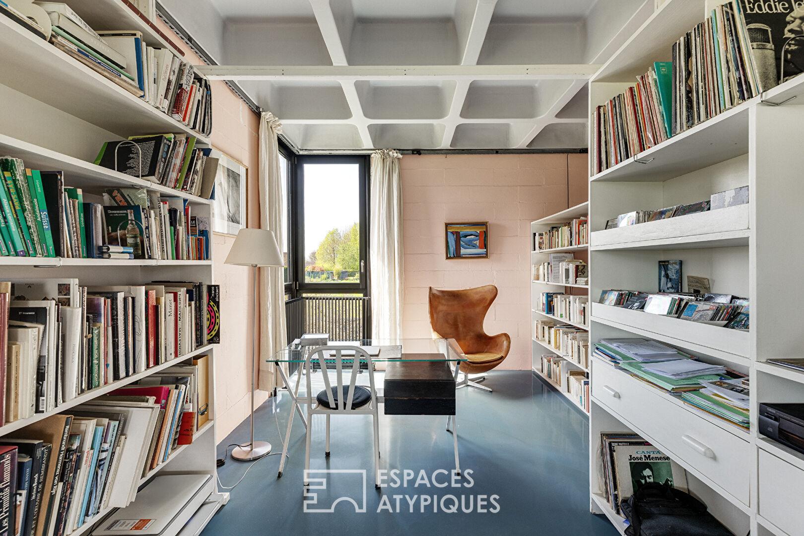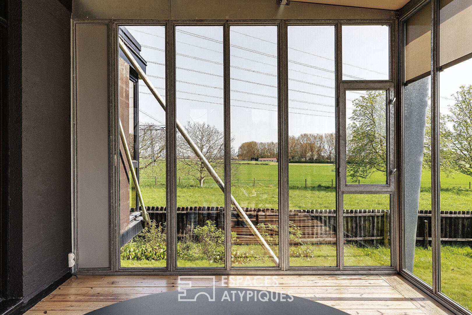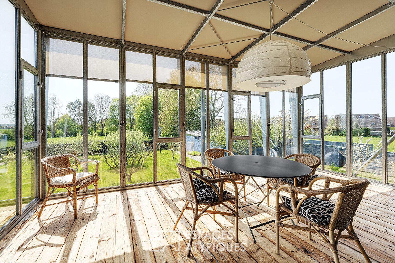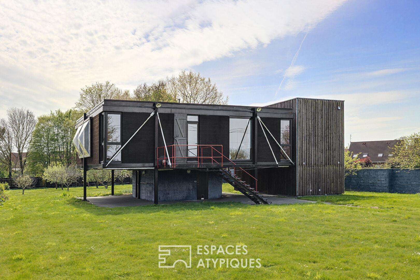 Située à Avelin, en limite d’Attiches, au coeur d’un environnement naturel exceptionnel à seulement 25 minutes de Lille, cette maison d’architecte de 179,70 m² offre un cadre de vie privilégié. Édifiée en 1972 sur une parcelle remarquable de 8895m², cette propriété singulière propose un art de vivre unique, entre architecture sculpturale et immersion totale dans la nature.
