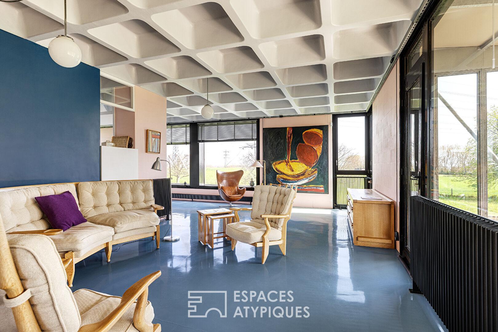 Cette propriété se distingue par son caractère résolument atypique, pensée autour d’une colonne technique centrale qui organise les espaces à 360°. Véritable oeuvre d’architecture brutaliste aux accents 70’s, elle séduira les amateurs de lieux uniques et inspirants. Un bien rare, à la croisée de l’immobilier de prestige et de l’habitat d’exception, où chaque détail participe à une expérience de vie hors du commun. Une visite permet d’en saisir toute la singularité.
